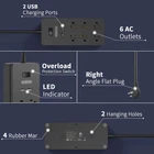 【Flat Plug Surge Protector with Long Cord】 - The Extra long 15ft power strip gives you flexibility to reach distant outlets and hard to reach places. A perfect solution for when power outlets are not conveniently located nearby. The right angle plug easily fits in tight spaces like behind furniture, bookshelves, desks or anything which is close to the wall not allowing you to use the standard Plug. Save a lot of space,move furniture closer to the wall without bending the cord. 【Widely-Spaced Outlet Strip with USB Ports】 - Slim power strip has 6 Widely Spaced AC Outlets which can accommodate slightly larger power adapters (preferably < 1.75” wide) without blocking adjacent outlets. Ideal for charging multiple devices together ( PC, monitor, Android Box, Echo & more) in living room or nightstand. 2 usb ports can intelligently charge your usb devices WITHOUT a variety of converters, save your space and make your desktop organized. 【Surge Protector with Overload Protection】 - Surge protector power strip with 1080-joules surge-protection rating and integrated circuit breaker safeguards your TV and other household, office devices from voltage fluctuations,surges and spikes.It is FCC & RoHS approved and made of the top-grade 1382°F Flame-Retardant Materials. 【Wall Mountable Power Strip】 - 2 mounting holes on the back allows you to securely install this power strip in various applications, including workbenches, desk, wallmounts, floormounts, under counters, dorm room & more, saving desktop space for you. 【Safety and Certificate】- ETL safety certified, with extension cord and other major components certified by UL. It offers overload protection, short-circuit protection, over-voltage protection, over-current protection, overheat protection, and grounding protection.