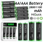 For Battery Descriptions Product Features * 100% Brand new and high quality * It is 4 in 1 HiQuick AA/AAA R03 rechargeable NI-MH 1100mAh replacement battery * The latest lock electric technology are adopted * Nimh environmental protection material * Rechargeable battery, up to 1000 recharge cycles * Excellent high discharge/drain performance * Exact replacement for standard AAA size batteries * Superior performance under low temperature condition * Longer in high drain devices than Alkaline batteries * Can be commonly usedd for for high power demend devices such as Digital Cameras, CD Players, Remote Control Vehicles, Metal Detectors, PocketFlashlights, PDAs Palm Pilots, Pagers, Game Boys, Children's Toys, etc Product Specification For AA Battery Type: Ni-MH Size: AA Voltage: 1.2V Capacity: 2800mAh Recycle: 1200 times For AAA Battery Type: Ni-MH Size: AAA Voltage: 1.2V Capacity: 1100mAh Recycle: 1200 times For Charger Descriptions [Quick Charger] HiQuick charger adopts Micro USB and TYPE-C dual input, and supports QC fast charging technology, which can adjust high current mode. [Practical and Multiple Slots Design] HiQuick battery charger have 4 bays designed for Ni-MH/Ni-CD AA AAA rechargeable batteries , two channels of independent identification chip, can charge 1 to 4 batteries, depending on your choice. [LCD Pilot Lamp] Battery charger with smart LCD which is more convenient to understand the charging status, and check the defective battery detection results. [Intelligent USB Charging] Freely charge anytime, anywhere, suitable for all kinds of USB interface input voltage, convenient and fast. The 2 charging ports should not be used at the same time. [Unique Charging Mode] This charger adopts -DV control technology, constant voltage and constant current, effectively improve battery life and prevent accidental damage. Let you and your family use it safely. Spacifications Input: Micro USB/Type C DC5V/1A Min Output: AA: DC 1.2V 1800mA; AAA:DC 1.2V 900mA Full-load Power: 5W Max Battery Charging Rate: ≥ 80% Charging Way: Constant voltage and current control ChargerKit Contents USB Cable x 1 User Manual x 1 4 Bay Battery Charger x 1 Package Includes According to what you chooce (Each four batteries come with one case box) ABOUT HiQuick HiQuick, since 1998, professional on batteries and chargers more than 20 years. Professional and reliable on Rechargeable Batteries and Battery Chargers. HiQuick always persistently providing high quality and services for everyone. Business Wholesale We are a small local company from California offer discount parts for retail and wholesale. If you need to purchase parts for business , please contact us for lower rates.