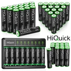 Features : * 100% Brand new and high quality * It is 4 in 1 HiQuick AA AAA rechargeable NI-MH replacement battery * The latest lock electric technology are adopted * Nimh environmental protection material * Rechargeable battery, up to 1000 recharge cycles * Excellent high discharge/drain performance * Exact replacement for standard AA AAA size batteries * Superior performance under low temperature condition * Longer in high drain devices than Alkaline batteries * Can be commonly usedd for for high power demend devices such as Digital Cameras, CD Players, Remote Control Vehicles, Metal Detectors, PocketFlashlights, PDAs Palm Pilots, Pagers, Game Boys, Children's Toys, etc Specification : AAA Rechargeable Battery * Capacity: 1100mAh * Voltage: 1.2V * Battery type: AAA R03 * Chemical Composition: Ni-MH AA Rechargeable Battery * Capacity:2800mAh * Voltage: 1.2V * Battery type: AA R6 * Chemical Composition: Ni-MH # For AA AAA Battery Charger # Features : [Quick Charger]HiQuick charger adopts Micro USB and TYPE-C dual input, and supports QC fast charging technology, which can adjust high current mode. [Practical and Multiple Slots Design]8 bays designed for Ni-MH/Ni-CD AA AAA rechargeable batteries, two channels of independent identification chip, can charge 1 to 8 batteries, depending on your choice. [LCD Pilot Lamp]Battery charger with smart LCD which is more convenient to understand the charging status, and check the defective battery detection results. [Intelligent USB Charging]Freely charge anytime, anywhere, suitable for all kinds of USB interface input voltage, convenient and fast. The 2 charging ports should not be used at the same time. [Unique Charging Mode]This charger adopts -DV control technology, constant voltage and constant current, effectively improve battery life and prevent accidental damage. Let you and your family use it safely. Specification : Brand: HiQuick Compatible Devices: Aa aaa nimh nicad rechargeable batteries Item Dimensions LxWxH: 5.51 x 3.54 x 1.38 inches Item Weight :166.9 Grams Battery Cell Composition: NiMH Input: Micro USB/Type-C DC5V/2A Min Output: AA: DC 1.2V 1800mA; AAA: DC 1.2V 900mA Full-load Power: 10W Battery Charging Rate: ≥80% Charging Way: Constant voltage and current control Size: (127*79.5*26.7) ± 3mm Weight: 101g ± 5g (No batteries included) Package Included: According to your choice !