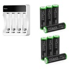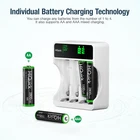 #For AA AAA Battery# Descriptions: * This is 4 in 1 HiQuick AA AAA rechargeable NI-MH rechargeable battery, up to 1200 recharge times. Durable for high power demend devices such as Digital Cameras, CD Players, Remote Control Vehicles, Metal Detectors, Pocket Flashlights, PDAs Palm Pilots, Pagers, Game Boys, Children's Toys, etc Features: * 100% Brand new and high quality * It is 4 in 1 HiQuick AA AAA rechargeable NI-MH replacement battery * The latest lock electric technology are adopted * Nimh environmental protection material * Rechargeable battery, up to 1000 recharge cycles * Excellent high discharge/drain performance * Exact replacement for standard AA AAA size batteries * Superior performance under low temperature condition * Longer in high drain devices than Alkaline batteries * Can be commonly usedd for for high power demend devices such as Digital Cameras, CD Players, Remote Control Vehicles, Metal Detectors, PocketFlashlights, PDAs Palm Pilots, Pagers, Game Boys, Children's Toys, etc Specification: AAA Rechargeable Battery * Capacity: 1100mAh * Voltage: 1.2V * Battery type: AAA R03 * Chemical Composition: Ni-MH * Each 4 batteries come with 1 case box #AA Rechargeable Battery# * Capacity:2800mAh * Voltage: 1.2V * Battery type: AA R6 * Chemical Composition: Ni-MH * Each 4 batteries come with 1 case box For AA AAA Battery Charger Features: Quick Charger - HiQuick charger adopts Micro USB and TYPE-C dual input, and supports QC fast charging technology, which can adjust high current mode. Practical and Multiple Slots Design - 8 bays designed for Ni-MH/Ni-CD AA AAA rechargeable batteries, two channels of independent identification chip, can charge 1 to 4 batteries, depending on your choice. LCD Pilot Lamp - Battery charger with smart LCD which is more convenient to understand the charging status, and check the defective battery detection results. Intelligent USB Charging - Freely charge anytime, anywhere, suitable for all kinds of USB interface input voltage, convenient and fast. The 2 charging ports should not be used at the same time. Unique Charging Mode - This charger adopts -DV control technology, constant voltage and constant current, effectively improve battery life and prevent accidental damage. Let you and your family use it safely. Specification: Brand: HiQuick Compatible Devices: Aa aaa nimh nicad rechargeable batteries Item Weight :90 Grams Battery Cell Composition: NiMH Input: Micro USB/Type-C DC5V/2A Min Output: AA: DC 1.2V 1800mA; AAA: DC 1.2V 900mA Full-load Power: 10W Battery Charging Rate: ≥80% Charging Way: Constant voltage and current control Weight: 101g ± 5g (No batteries included) Package Included: According to Your Choice