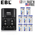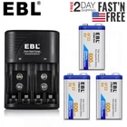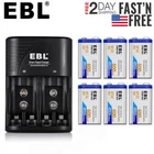 Product Features For Battery: 1. 6F22 9V 600mAh lithium-ion rechargeable battery. 2. No memory effect, improved low self discharge makes it still maintain 75% of capacity after 3 year of non-use. 3. Batteries come pre-charged and can be recharged up to 1200 times. 4. Recommended for smoke alarms, professional audio and medical devices. 5. 100% brand New with high Quanity For Charger: 100% New Brand and High Quality. The LED Smart Charger can charge 2 or 4 AA AAA NI-MH/NI-CD and 1 or 2pcs 9V NI-MH/NI-CD Li-ion Rechargeable Battery. Charge Mode: When powered on for about a second, the LED indicator will change from Green to Red, and finally to Green again. During the charging, the LED indicator is Red. And when fully charged, it will turn to Green. Please notice the place of anode and cathode when pit in the batteries and do install the batteries in pairs or in fours in turn. Otherwise, the indicator will not light, and batteries cannot be charged. 4. Warranty: one year 5. Shipping: From US Product Specification Charger Input: AC 110V Slots: 2x 9v slots + 4x AA/AAA Slots Plug : US Plug Fit for: 9V Ni-MH Ni-CD LI-ion Batteries AA Ni-Mh Rechargeable Battery AA Ni-Cd Rechargeable Battery AAA Ni-Mh Rechargeable Battery AAA Ni-Cd Rechargeable Battery Battery Model: 6F22 Chemistry: Li-ion Capacity: 600mAh Size : 9V 9Volt Batteries Package Include According to your choice