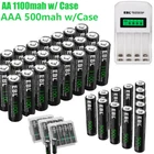 Feature: For AA AAA Batteries For 500mAh AAA Batteries: [High Capacity & Long Lasting Time] - 500mAh High Capacity can give you more run time when fully charged. Also can replace other capacity NiCd AA cells AA battery. [Match Your Device Perfectly] - Perfect used for solar powered garden lights, landscaping lights, lawn lights, etc. replace all alkaline disposable batteries that power your TV remotes, wireless mouse and keyboards, gaming controllers, RC remotes and others. [Good Performance] - Much better high temperature performance than other type batteries, can be used in -4℉ to 140℉, They can be charged from the sun even in the snow. [Low self-discharge] - Embedded seal structure expand the space of crystal lattice, make more room for hydrogen, so EBL batteries will holds 75% power after 3 years benefit from its concentration to low self-discharge project. [Storage Cases] - every 4 batteries we packed in one professional battery storage case - carefulness due to professional For 1100mAh AA Batteries: [High Capacity & Long Lasting Time] - 1100mAh High Capacity can give you more run time when fully charged. Also can replace 600mAh, 800mAh, etc NiCd AA cells AA battery. [Match Your Device Perfectly] - Perfect used for solar powered garden lights, landscaping lights, lawn lights, etc. replace all alkaline disposable batteries that power your TV remotes, wireless mouse and keyboards, gaming controllers, RC remotes and others. [Good Performance] - Much better high temperature performance than other type batteries, can be used in -4℉ to 140℉, They can be charged from the sun even in the snow. [Low self-discharge] - Embedded seal structure expand the space of crystal lattice, make more room for hydrogen, so EBL batteries will holds 75% power after 3 years benefit from its concentration to low self-discharge project. [Storage Cases] - every 4 batteries we packed in one professional battery storage case - carefulness due to professional Specification: For 500mAh AAA Ni-CD Rechargeable Batteries: 1. Battery Type: AAA 2. Capacity: 400mAh 3. Voltage: 1.2V 4. Chemistry: Ni-CD 5. Weight: 7.8 ounce (220 g) 6. Pro-environment, 7. EBL batteries can be recharged up to 1200 times when fully or partially drained. 8. Batteries are great for use in household devices such as digital cameras, toys, remote controls, hand held games For 1100mAh AA Ni-CD Rechargeable Batteries: 1. Battery Type: AA 2. Capacity: 1100mAh 3. Voltage: 1.2V 4. Chemistry: Ni-CD 5. Weight: 7.8 ounce (220 g) 6. Pro-environment, 7. EBL batteries can be recharged up to 1200 times when fully or partially drained. 8. Batteries are great for use in household devices such as digital cameras, toys, remote controls, hand held games For AA AAA LCD Charger Model EBL 907 is professional on AA, AAA Ni-MH/Ni-CD rechargeable battery. Individual function helps to charge batteries in pairs and single. Individual charging status for each slot, can freely charge 1,2,3,4 Ni-MH Ni-CD AA/AAA rechargeable battery. Smart LCD to show its charging progress separately, the battery icon stop flashing when fully charged. Advanced MCU control and -∆V function, over-heat and over-current protection, short-circuit protection, non-rechargeable and defective battery detection. Trickle charged mode will help maximize the capacity of battery to full. Worldwide usage: 100-240V AC, 50/60 Hz. Unique Trickle Charge Adopting -∆V intellectual cut-off charging method, automatically turn to trickle charge, overheat-detection to prevent over-charging, short circuit protection and reverse polarity protection. The Details Features of charger 1.Input: 100-240V AC Output: 1x AA 1.2VDC 2000mA, 1x AAA 1.2VDC 1000mA; 2x AA 1.2VDC 1000mA, 2x AAA 1.2VDC 500mA; 3x AA 1.2VDC 500mA, 3x AAA 1.2VDC 250mA; 4x AA 1.2VDC 500mA, 4x AAA 1.2VDC 250mA; 5. No Load Power Consumption: 1W MAX 6. Full Load power consumption: 28W MAX 7. Battery Charge Rate: >90%8. slots: 4 slots9. Color: White10.Features: LCD ,multi-slots 11. Brand: EBL LED indicates the status of the battery “CHG” -- Charging; “DISCHG” -- Discharging; “ERROR” -- install the battery incorrectly or the battery is broken one. Compatible with Can both charge 1,2,3,4 AA and AAA NiMH NiCD rechargeable batteries individually.(Do not charge alkaline or Lithium batteries) Package Included: According to your choice
