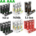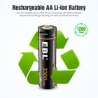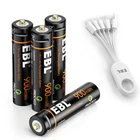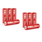 Please note that the package included is according to what you choose. if you buy 4x NiMH AAA Batteries , you will get 4Pcs NiMH AAA Batteries Only. For (Red) Li-Ion AA Rechargeable Batteries Features EBL 1.5V AA Rechargeable Li-ion Battery, Steady Voltage for high current applications 1200 cycles time - Long battery Life Ideal for digital cameras, remote controls, toys, and more for high current applications 1.5V Lithium AA battery - Steady Voltage 3000mWh li-ion long-lasting Convenient, long-lasting double a batteries These cells can provide approximately the same and steady voltage until the whole cell is depleted Fully charged in 2 hours - Fast charging AA AAA Battery The Details Size: AA Voltage: 1.5V Capacity:3000mWh Chemistry: Li-ion Type: Rechargeable Note:These Li-Ion AA Batteries can only charge by Li-Ion Batteries Exclusive Charger Package Included: Choose your need For (Black) Li-Ion AA/AAA Rechargeable Batteries (Upgraded) Features EBL 1.5V USB AA AAA Rechargeable Lithium Battery, Steady Voltage for high current applications 1200 cycles time - Long battery Life Ideal for digital cameras, remote controls, toys, and more for high current applications 1.5V Lithium USB AA AAA battery - Steady Voltage 3300mWh AA or 900mWh AAA li-ion long-lastingConvenient long-lasting double a batteries These cells can provide approximately the same and steady voltage until the whole cell is depleted Fully charged in 2 hours - Fast charging AA Battery Full charge in 2 hours, Advanced iQuick charging technology with DC 5V/2A USB input, more efficient and energy-saving Build-in Light Show the Charging Process it showed the red light indicating recharging. it showed the green light indicating when they were fully charged The Details Size:AAA Voltage : 1.5V mwh : 900 Chemistry: Li-ion 1200 Charges! Special Feature: Charging by USB Power directly Size: AA Feature: Charging by USB Power directly Voltage: 1.5V Capacity: 3300mWh ( = 2200mah) Chemistry: Li-ion Type: Rechargeable Case : included Special Feature: Charging by USB Power directly Package see dropdown menu Each 4 batteries come with 1Pcs charging cable(4 in 1) For NiMH AA/AAA Rechargeable Batteries Features * 100% Brand new and high quality * It is 4 in 1 EBL AA AAA rechargeable NI-MH replacement battery * The latest lock electric technology are adopted * Nimh environmental protection material * Rechargeable battery, up to 1000 recharge cycles * Excellent high discharge/drain performance * Exact replacement for standard AA / AAA size batteries * Superior performance under low temperature condition * Longer in high drain devices than Alkaline batteries * Can be commonly usedd for for high power demend devices such as Digital Cameras, CD Players, Remote Control Vehicles, Metal Detectors, PocketFlashlights, PDAs Palm Pilots, Pagers, Game Boys, Children's Toys, etc Specification AAA Rechargeable Battery * Capacity: 1100mAh * Voltage: 1.2V * Battery type: AAA R03 * Chemical Composition: Ni-MH * Total Weight: 60g * Quantity: 4/8/12/16pcs AA Rechargeable Battery * Capacity: 2800mAh * Voltage: 1.2V * Battery type: AA R6 * Chemical Composition: Ni-MH * Total Weight: 60g * Quantity: 4/8/12/16pcs For NiCd AA/AAA Rechargeable Batteries Features [High Capacity & Long Lasting Time] - High Capacity can give you more run time when fully charged. Also can replace NiCd AA/AAA cells battery. [Match Your Device Perfectly] - Perfect used for solar powered garden lights, landscaping lights, lawn lights, etc. replace all alkaline disposable batteries that power your TV remotes, wireless mouse and keyboards, gaming controllers, RC remotes and others. [Good Performance] - Much better high temperature performance than other type batteries, can be used in -4℉ to 140℉, They can be charged from the sun even in the snow. [Low self-discharge] - Embedded seal structure expand the space of crystal lattice, make more room for hydrogen, so EBL batteries will holds 75% power after 3 years benefit from its concentration to low self-discharge project. [Storage Cases] - every 4 batteries we packed in one professional battery storage case - carefulness due to professional Product Specification: 1. Battery Type: AAA/AA 2. Capacity: 400mAh/1100mAh 3. Voltage: 1.2V 4. Chemistry: Ni-CD 5. Weight: 7.8 ounce (220 g) 6. Pro-environment, 7. EBL batteries can be recharged up to 1200 times when fully or partially drained. 8. Batteries are great for use in household devices such as digital cameras, toys, remote controls, hand held games Package Includes According to your choice