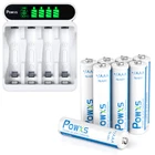 For AA A Battery Features: Perfect Standard AA/AAA Size: rechargeable aa battery is ultra fit for household use, such as X-box remote control, flashlights, wireless gaming devices, digital camera flash units, and wireless mouse and keyboards. Up to 1200 Cycles: Recharged up to 1200 times, Powxs aa rechargeable NIMH batteries can be recharged by any smart battery charger designed for NiMH cells Super Low self-Discharge Technology: Powxs aa battery keep up to 75% capacity without use for 10 Years, Keep and storage without worry when you go away for travel Environmental-friendly for Recycled: These AA/AAA battery do not contain Hg / Cd / Pb harmful metal substances, Can be recyceld wihtout worry the environment where we live No Memory Effect: these aa batteries are nimh batteries, No effect by discharge cycles , can freely charging anytime. Specifications: For AAA Battery Battery type: Ni-MH Battery size: AAA Battery voltage: 1.2V Battery rated capacity: 800mAh Recycle times: 1200 times For 4-Solt LCD Charger Feature: POWXS Universal 4 Bay LCD AA AAA Battery Charger Can freely charge 1/2/3/4 pcs AA/AAA Ni-MH and Ni-CD rechargeable batteries.No need in pairs. Multiple Protection - More Safety,More Reliable With advanced MCU control system, intelligent △V and -△V cut-off charging tech, battery charger turns to trickle charging automatically to prevent the batteries from over-voltage, over-current and over-heat, keep you and your battery safe. Specifications : Input: Micro USB/Type C DC5V/1A Min Output: DC 1.2V AA :1800mA; AAA: 900mA Individual 4 slots Smart LCD Display USB/Type-C Dual Input With Multiple Protection Package Included: Choose your need
