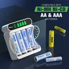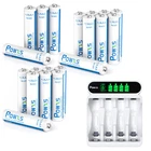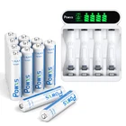 For AA A Battery Features: Perfect Standard AA/AAA Size: rechargeable aa battery is ultra fit for household use, such as X-box remote control, flashlights, wireless gaming devices, digital camera flash units, and wireless mouse and keyboards. Up to 1200 Cycles: Recharged up to 1200 times, Powxs aa rechargeable NIMH batteries can be recharged by any smart battery charger designed for NiMH cells Super Low self-Discharge Technology: Powxs aa battery keep up to 75% capacity without use for 10 Years, Keep and storage without worry when you go away for travel Environmental-friendly for Recycled: These AA/AAA battery do not contain Hg / Cd / Pb harmful metal substances, Can be recyceld wihtout worry the environment where we live No Memory Effect: these aa batteries are nimh batteries, No effect by discharge cycles , can freely charging anytime. Specifications: For AAA Battery Battery type: Ni-MH Battery size: AAA Battery voltage: 1.2V Battery rated capacity: 800mAh Recycle times: 1200 times For 4-Solt LCD Charger Feature: POWXS Universal 4 Bay LCD AA AAA Battery Charger Can freely charge 1/2/3/4 pcs AA/AAA Ni-MH and Ni-CD rechargeable batteries.No need in pairs. Multiple Protection - More Safety,More Reliable With advanced MCU control system, intelligent △V and -△V cut-off charging tech, battery charger turns to trickle charging automatically to prevent the batteries from over-voltage, over-current and over-heat, keep you and your battery safe. Specifications : Input: Micro USB/Type C DC5V/1A Min Output: DC 1.2V AA :1800mA; AAA: 900mA Individual 4 slots Smart LCD Display USB/Type-C Dual Input With Multiple Protection Package Included: Choose your need