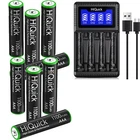 For Battery Features: * 100% Brand new and high quality * It is 4 in 1 HiQuick AA/AAA R03 rechargeable NI-MH 1100mAh replacement battery * The latest lock electric technology are adopted * Nimh environmental protection material * Rechargeable battery, up to 1000 recharge cycles * Excellent high discharge/drain performance * Exact replacement for standard AAA size batteries * Superior performance under low temperature condition * Longer in high drain devices than Alkaline batteries * Can be commonly usedd for for high power demend devices such as Digital Cameras, CD Players, Remote Control Vehicles, Metal Detectors, PocketFlashlights, PDAs Palm Pilots, Pagers, Game Boys, Children's Toys, etc Specification: For AA Battery Type: Ni-MH Size: AA Voltage: 1.2V Capacity: 2800mAh Recycle: 1200 times For AAA Battery Type: Ni-MH Size: AAA Voltage: 1.2V Capacity: 1100mAh Recycle: 1200 times For Charger Cycle Charge 1200 Times & Low Self-discharge: The HiQuick 1.2V NiMH AA AAA rechargeable batteries can be cycle charged over 1200 times, reducing the use of disposable batteries, benefiting the environment and saving your expenses. In addition, their excellent low self-discharge performance allows them to maintain over 80% capacity even after not being used for up to 3 years. Save Charging Time: The HiQuick rechargeable battery charger can quickly charge 1-4 AAA batteries in about 2 hours, and 1-4 AA batteries in about 3.5 hours. Wide Compatibility & Long-lasting Endurance: HiQuick rechargeable AA AAA batteries have wide compatibility and are suitable for common electronic devices, such as remote controls, flashlights, digital cameras, electric toys, electric toothbrushes, and more, providing these devices with long-lasting and stable power. Independent Charging Slots: The HiQuick 4 Bay Rechargeable AA AAA Battery Charger can independently charge 1-4 Ni-MH/Ni-CD Rechargeable AA/AAA Batteries at the same time, making it more convenient for you to charge. Passed UL Certification: HiQuick AA AAA battery charger has passed UL certification and is equipped with multiple safety mechanisms such as short circuit protection, overvoltage protection, overcharge protection, overheating protection, etc., which can effectively prevent safety hazards during the charging process and ensure the safety of your battery. Additionally, the LCD display provides a convenient way to monitor charging process and status. Specification: Input: 5 Volts (DC) Product Dimensions:6.37"D x 3.15"W x 1.57"H Item Weight:3.92 ounces NiMH/NiCD batteries: DC 1.53V 1000MA±50MA*4 Package Included: According to your chooce (Each four batteries come with one case box) On Oct 31, 2024 at 02:04:55 PDT, seller added the following information: On Feb 11, 2025 at 20:20:12 PST, seller added the following information: