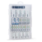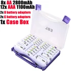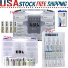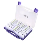 For 18PCS Batteries Box: About this item High Quality:The beautiful battery box comes with different types of batteries and a charger, so that your battery has a storage place, the box that is not easy to break, is made of plastic. AA/AAA batteries: AA/AAA batteries are essential for every home. They can use a wide range of products. EBL rechargeable batteries are very durable. Improved low self discharge makes it still maintain 80% of capacity after 3 year Of non-use. 6201 Ultra-fast Battery Charger:Unique 4 bay USB individual design, can charging for 1/2/3/4 AA/AAA Ni-MH battery freely. Fast Charging Technology, 40min iQuick charging speed, only 2.5 hours charging your 4 pack rechargeable batteries fully, save more time. C/D type battery storage boxes: They can replace the C type and D type batteries, just put the AA batteries in and can be used, the operation is very simple and convenient EBL Power Packages: EBL Family Battery Storage Case with EBL AA 2800mAh Rechargeable Batteries 8 Pack, AAA 1100mAh Rechargeable Batteries 4 Pack, iQuick Individual Battery Charger, 2 C Battery Adapters, 2 D Battery Adapters. Note: Products with electrical plugs are designed for use in the US. Outlets and voltage differ internationally and this product may require an adapter or converter for use in your destination. Please check compatibility before purchasing. WAHT YOU GET: 1* EBL family storage case 1* EBL 40Min Smart Charger 8* EBL AA 2800mAh Ni-MH rechargeable batteries 4* EBL AAA 1100mAh Ni-MH rechargeable batteries 2* EBL C battery adapters 2* EBL D battery adapters For 25PCS Batteries Box: About this item EBL Power Packages: EBL Battery Organizer Storage Case included - EBL AA 2800mAh Rechargeable Batteries 12 Count, AAA 1100mAh Rechargeable Batteries 8 Count, 2 C Battery Adapter, 2 D Battery Adapters. Purple Battery Organizer : Perfect for storing batteries - Keep batteries organized, safe, and neat. Keep your children away from Batteries.Maybe it's a great ideal for gift! 1200 Tech, ProCyco (Professional recycle) helps maximize its best power performance while charging, which can help you save lots of money. The high capacity 2800mAh AA and 1100mAh AAA rechargeable batteries guarantee you have a longer work time. C/D Size Adapters: EBL C size and D size spacers made from high quality, durable plastic, just put your AA batteries into spacers, then you will get C or D size batteries, very convenient to use. Compact Battery Storage Case : EBL battery organizer storage case adopts high quality materials and blister packaging box.The portable design allows you to carry it better. Note: Products with electrical plugs are designed for use in the US. Outlets and voltage differ internationally and this product may require an adapter or converter for use in your destination. Please check compatibility before purchasing. WAHT YOU GET: 1* EBL family storage case 8* EBL AA 2800mAh Ni-MH rechargeable batteries 12* EBL AAA 1100mAh Ni-MH rechargeable batteries 2* EBL C battery adapters 2* EBL D battery adapters For 47PCS Batteries Box: About this item EBL Power Packages: EBL Battery Combo Storage Case included - 20-Pack 2800mAh ni-mh AA rechargeable batteries, 16-Pack 1100mAh ni-mh AAA rechargeable batteries, 5-Pack C size battery adapters, and 4-Pack D size battery adapters, 2-Pack 600mAh 9V lithium rechargeable batteries, and a small flashlight. 1200 Tech, ProCyco (Professional recycle) helps maximize its best power performance while charging. C/D Battery Adapters: These adapters can convert AA battery to C/D Size battery, are small tools, easy to carry, can be placed at hand, at the home, office, campsite, etc., battery life will Depending on the use. Battery Organizer Storage Case: Perfect for storing batteries - Keep batteries organized, safe, and neat. Keep your children away from Batteries. Batteries are great for use in household devices such as digital cameras, toys, remote controls, handheld games,2-way radios, PDAs, flashlights, alarm clocks ,LCD-TVs, Toothbrushes, Shavers and portable audio players. How to Use C/D Size Spacer: How to Install: Put the + side of the battery into the bottom of the spacer. How to remove: Push the tip of the + side of the spacer with your finger. WAHT YOU GET: 20x 2800mAh ni-mh AA rechargeable batteries 16x 1100mAh ni-mh AAA rechargeable batteries 5x C size battery adapters 4x D size battery adapters 2x 600mAh 9V lithium rechargeable batteries 1x small flashlight CAUTION: The batteries will keep a high quality after 3-5 times charge & discharge when used in the first time or long time no used. li-ion rechargeable batteries: the standard voltage of All brands' 9V lithium-ion rechargeable batteries is 8.2V-8.4V. For AA AAA Batteries : Features * 100% Brand new and high quality * It is 4 in 1 EBL AA AAA rechargeable NI-MH replacement battery * The latest lock electric technology are adopted * Nimh environmental protection material * Rechargeable battery, up to 1000 recharge cycles * Excellent high discharge/drain performance * Exact replacement for standard AA AAA size batteries * Superior performance under low temperature condition * Longer in high drain devices than Alkaline batteries * Can be commonly usedd for for high power demend devices such as Digital Cameras, CD Players, Remote Control Vehicles, Metal Detectors, PocketFlashlights, PDAs Palm Pilots, Pagers, Game Boys, Children's Toys, etc Specification AAA Rechargeable Battery * Capacity: 1100mAh * Voltage: 1.2V * Battery type: AAA R03 * Chemical Composition: Ni-MH AA Rechargeable Battery * Capacity: 2800mAh * Voltage: 1.2V * Battery type: AA R6 * Chemical Composition: Ni-MH For 9V Li-ion batties: Product Features Brand new 9V 600mAh 6F22 li-ion rechargeable battery with high quality and competitive price High energy density, long lifespan, and can be recharged up to 1,200 times in any 9V battery charger, more durable to use Compact and rechargeable, so you can carry it anywhere anytime, more convenient to use Pr