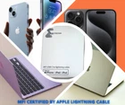 This Lightning charger cable is MFi certified by Apple, ensuring compatibility with a wide range of Apple iPhone models, including the iPhone 14 Pro Max, iPhone 13 Pro, iPad, iMac for syncing data and more. The cable has a length of 1 meter and features fast charging capabilities, making it ideal for users who need a quick and reliable charge. Additionally, this charging and data sync cable has a Lightning connector with a manufacturer warranty of 3 months, buyers can trust that this charger cable will last them a while. The cable is white in color and we have hundreds of stocks, making it perfect for those who need multiple cables for home, work, or on-the-go use. Get this markdown price MFi certified by Apple fast charge lightning cable for your Apple iPhone, iMac, iPad & many more today!
