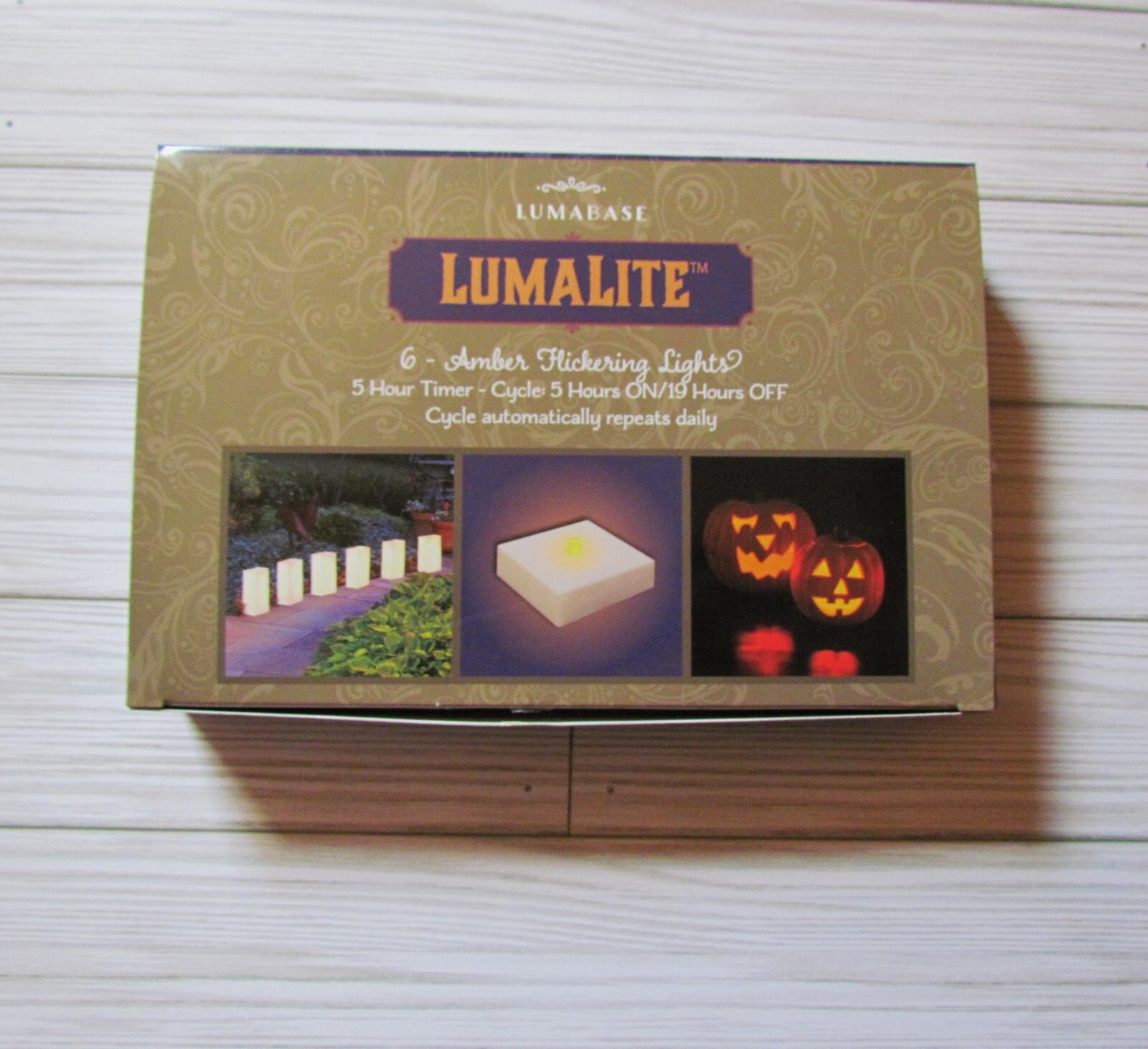 Set of 6 plastic Tombstone Luminaria bags and 6 LumaLites. This box is open but never used. Plastic bags measure approximately 5-7/8" x 3-1/2" x 10". Luma Lights measures approximately 3.125" x 3.125" x 2'. they are molded plastic flameless light. On / Off switch is on the bottom. May ship using recycled materials.