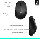 M330 SILENT Wireless Mouse, with USB Receiver, Optical Tracking, Quiet & Lightweight, Long Battery Life, for PC, Mac, Laptop, Chromebook - Black Quieter Click: ’s SilentTouch Technology reduces over 90 percent (1) of clicking sounds — ensuring top performance while contributing to a quieter working environment Crafted for Comfort: Design with naturally shaped contoured grips, the M330 SILENT wireless mouse is built for long-lasting comfort and functionality for right-handed users Long Battery Life: M330 SILENT has a 18- battery life (2) and power saving auto-sleep mode; it allows you to focus on your work without the hassle of changing batteries (1 x AA included) Advanced Optical Tracking: With a wireless range of up to 33 ft (10m)(3), this quiet computer mouse provides high-performance precision and smart cursor control on most surfaces Plug and Play: M330 SILENT comes with a USB-A receiver that’s compatible with most operating systems including Windows, macOS, ChromeOS, and Linux Upgrade to Signature M650: Upgrade to smarter scrolling, better comfort, and more productivity Plastic parts in M330 SILENT include certified post-consumer recycled plastic (Black: 76%, Grey: 58%)* Product carbon footprint: kg CO2e Note: In case of Wireless mouse, the USB receiver will be provided inside or along with the mouse With the same click feel and over 90% noise reduction* compared to classic mice, M330 silent offers a quiet experience for yourself and those around you. It has a long-lasting 18- battery life with auto-sleep and a powerful 10-meter wireless range** with 128-bit encryption between the mouse and the receiver. Plus, it's designed with contoured grips made of soft rubber for total comfort. Just plug the tiny USB receiver and it works with Windows, Mac, Chrome OS or Linux. Finally, the advanced optical tracking s smooth and precise moves on almost any surface. *sound level comparison between M330 Silent and M170. Measured by an independent lab. **actual wireless range may vary based on use, settings, and environmental conditions. *sound level comparison between M330 Silent and M170. Measured by an independent lab . **actual wireless range may vary based on use, settings, and environmental conditions.
