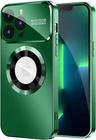 MAKAVO Magnetic for iPhone 13 Pro Case| Compatible with MagSafe| Built-in Camera Lens Protector| Logo View| Military Grade Drop Proof Phone Case Cover| Green