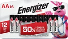 16-pack of Energizer MAX alkaline AA batteries Up to 50% longer lasting than basic alkaline batteries AA size in demanding devices Leak resistant-construction protects your devices from leakage of fully used batteries for up to 2 years Bonus: It’s guaranteed Non-stop energy for your non-stop family’s must-have devices—think toys, flashlights, wireless mice, remotes, and more Holds power up to 10 years in storage—so you’re never left powerless Product Description Alkaline batteries provide a long-lasting power source Use in calculators, pencil sharpeners, cameras, flashlights, tape recorders and more Manufactured in United States Brand Story By Energizer
