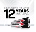 About This Product Power the devices you love with Alkaline AA Batteries. These batteries fuel the technology that helps you live, work and play, whether you need remote batteries, clock batteries, or backup batteries for your child's favorite toys and games. Powerseal Technology helps protect your devices against damaging leaks for up to two years after these AA MAX Batteries are fully used. With a shelf life of up to 12 years in storage, these batteries are ready to keep your devices operating when you need them most. Depend on the power of MAX AA Batteries to power your everyday electronics. Highlights 36 pack of MAX AA Alkaline Batteries, Double A Batteries MAX AA batteries provide dependable power - up to 50% longer lasting than EVEREADY GOLD in demanding devices The power you depend on for your AA devices, from toys and flashlights to everyday items like remotes These AA batteries hold power for up to 12 years in storage MAX AA batteries are designed to protect your devices against damaging leaks for up to two years after fully used Feel confident knowing you have the long-lasting power and protection you expect from AA battery pack Dimensions Product Depth (in.) 1.82 in Product Height (in.) 6.0 in Product Width (in.) 9.24 in Details Battery Capacity (mAh) 2779.0 Battery Power Type Alkaline Battery Size AA Cell Type Alkaline Features No Additional Features Number in Package 36 Safety & Security Product Type Battery Voltage (V) 1.5 V