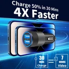 MFi Certified 4.8A Dual USB Smart Power Fast Car Charger for iPhone 14/13/12/11/XS/XR/SE/X 8/iPad/AirPods 4X Fast Charging and Dual USB Smart Power: 1. Our Dual USB car charger with advanced independent output technologies automatically charging two iPhone simultaneously. 2. 's exclusive intelligent power management chip, make a 100% increase in operating frequency, Charge speed increased by more than 4 times. Technical Specifications: 2 * MFi Certified Lightning Cable Input Voltage: DC12-24V Each USB Output: 5.0V--2.4A Total Output: 24W Led Indicator: Blue Light Certifications: MFi Certified/UL/ETL/FCC/CE/ROHS Applicable Equipment: iPhone 14, 14 Plus, 14 Pro, 14 Pro Max iPhone 13, 13 Mini, 13 Pro, 13 Pro Max iPhone 12, 12 Mini, 12 Pro, 12 Pro Max AirPods Pro/3/2/1 iPhone SE 2020 iPhone 11, 11 Pro, 11 Pro Max iPhone X, XR, XS, XS Max iPhone 8, 8 Plus iPhone 7, 7 Plus iPhone 6, 6 Plus, 6S, 6S Plus iPhone 5, 5C, 5S, SE iPad, iPod MFi Certified Lightning to USB Cable: 1. Adopt Original C89 Terminal and Smart Chip, builds a double protection for your iPhone or iPad. 2. Built-in overvoltage protection, battery protector and automatic chip recognition functions protect your iPhone/iPad/AirPods battery well from damages. Latest iActivePower Technology: 1. Built in High-Tech Chipset and Protection Resistor, Protect your iPhone against short circuiting, over-heating, over-currents, and over-charging. 2. Features a Dynamic Temperature Sensor which actively monitors temperature, and a Power Tuner Chip which adjusts power output to safeguard your connected iPhone/iPad device. Hassle-Free Warranty: 1. We provide 6-Years Warranty for This Car Charger and Lifetime Technical Support. 2. What You Get: 's 4.8A/24W Dual USB Smart Power Fast Car Charger + 2 * MFi Certified USB to Lightning Cable. 【Equipped with Dual USB Smart Power】: Using highly efficient components and an advanced chipset, 's High-Tech Chip Technology is perfectly compatible with iPhone. Our intelligent power fast car charger can charging two iPhone devices simultaneously, Provide a maximum of 2.4A/12W if a single port is used and 4.8A/24W when dual ports are used. Our most advanced charging technology ever charges virtually iPhone at its fastest possible, the charging speed is directly increased by 4 times. 【2 Pack MFi Certified Lightning Braided Cable】: 's Lightning to USB cable with latest C89 termina. This MFi-Certified lightning cable is compatible with the following lightning devices: iPhone 14/14 Plus/14 Pro/14 Pro Max/13/13 Mini/13 Pro/13 Pro Max/12/12 Mini/12 Pro/12 Pro Max/SE 2020/11/11 Pro/11 Pro Max/XR/XS/XS Max/X 8 7 6 5, iPad, AirPods. The MFi Certified Cable comes with surge protection and 56KΩ pull-up resistor for preventing excessive current maximize charging efficiency. 【Leading the Way in Smart Chip Tech】: Built-in intelligent power management chip and advanced temperature control system that match the current required by the iPhone device automatically while maximizing charging speed and efficiency. Features a Dynamic Temperature Sensor which actively monitors temperature, and a Power Tuner Chip which adjusts power output to safeguard your connected iPhone/iPad/AirPods device. 【Multiple Security Advanced Protection】: Certified by MFi, UL, ETL, FCC, CE, ROHS approve. Built-in MFi Certified Chipset provide overvoltage protection, battery protector and automatic chip recognition functions preventing your iPhone from over chargerd and overheating. 's exclusive all-new iActivePower safety system with overload protection to enhanced safe charging, Provides continuous temperature monitoring and output control to protect your connected iPhone/iPad. 【Premium Materials and Design】: The housing made of an aluminum alloy + ABS fireproof materials offers better scratch resistance, heat dissipation, attractive design, and long service life, perfect for the most untouched vehicle interiors. Gold-plated tubing reduces heat during charging while maximizing charging speed and efficiency. The ring LED indicator can help you to find the charging ports easily in the dark, Easily fits in a car cigarette Lighter socket with limited space.