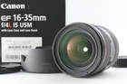 [MINT] Canon EF 16-35mm f/4 L IS USM From JAPAN #2022403 Description Total Condition; MINT Serial Number; 373000480 Appearance; Appearance is beautiful. It shows minimal signs of use. *Please check photos. Optics; -Lens: Beautiful condition. There is no fog. There is no fungus. There is no balsam separation. There are no scratches. There are no large dusts. No problem in the shooting. Functional; It works properly. Bundled Items; All you can see on the picture will be included in a set of a package. Above condition is based on my own opinion. Please check the photo carefully. Please feel free to contact me for any questions! Thank you. Shipping I send a product by DHL . I attach the tracking number. Please bid it without worrying. Shipping is available from Monday to Friday. Weekends are not available because office is closed. Storage and Packing Storage Immediately after shooting, it is placed in a closed container with desiccant and stored for 24 hours and 365 days in a temperature and humidity controlled warehouse. All products, including cameras and lenses, are stored in a temperature- and humidity-controlled warehouse 24 hours a day, 365 days a year. Packing By weight and shape of each product, I use 13 kind of cushioning materials and pursue safety and weight reduction. Returns Unconditional Return Policy Customer service and satisfaction are very important to us. I have an unconditional return policy if notified within 30 days of the receipt of the item. All returned items must be the original condition. All return requests must be made within 30 days of the receipt of the item. Please contact me first for return before you ship it back to me. The postage of the returned goods is a buyer burden. International Buyers Please Note: Import duties, taxes, and charges are not included in the item price or shipping cost. These charges are the buyer's responsibility. Please check with your country's customs office to determine what these additional costs will be prior to bidding or buying.