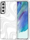 MOSNOVO Designed for Galaxy S21 FE Case| [6.6 FT Military Grade Drop Protection] Clear Shockproof Phone Cover for Samsung Galaxy S21 FE 5G - White Swirl