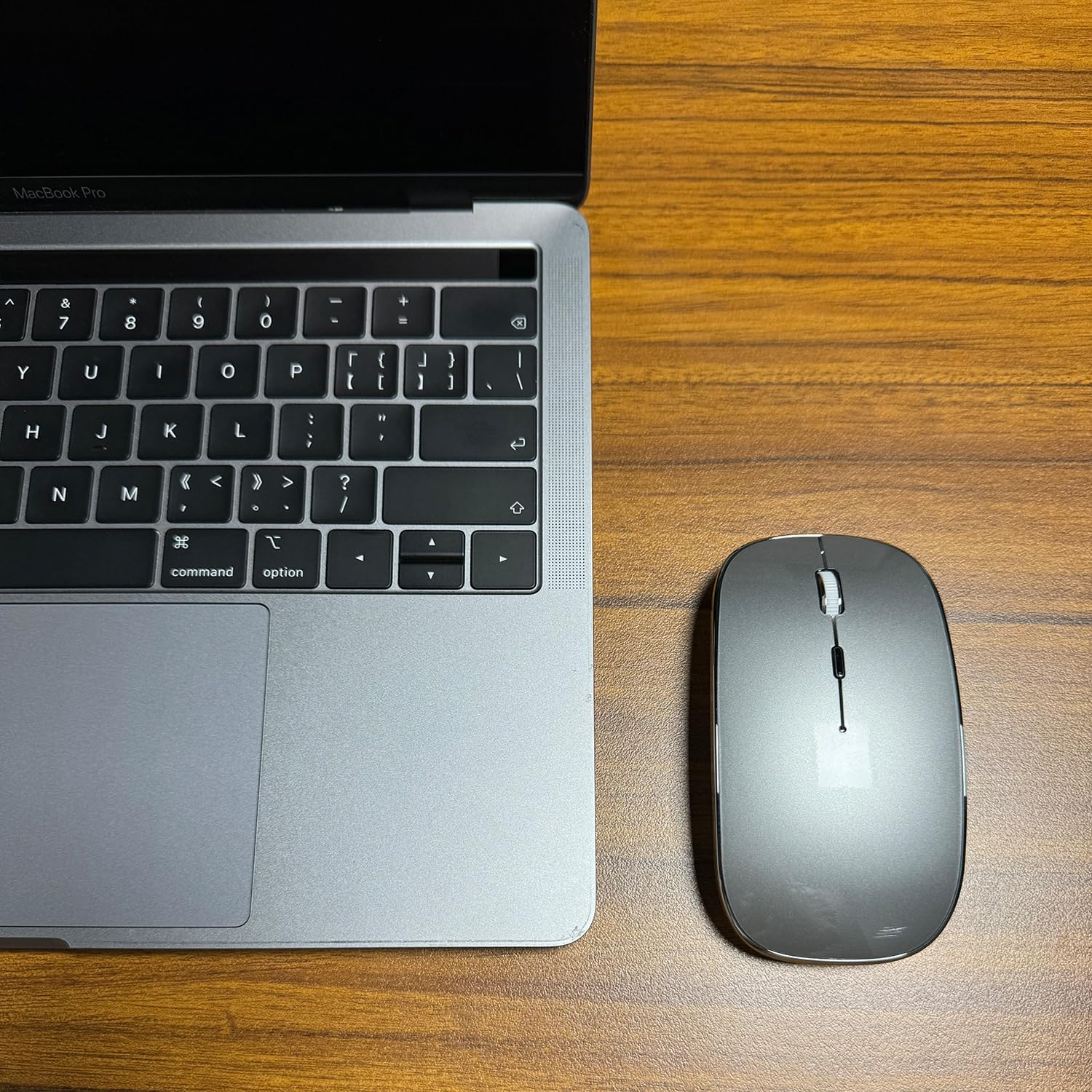 It is compatible with Mac iMac Macbook Pro Macbook Air 2012/2013/2014/2015/2016/2017/2018/2019/2020/2021/2022/2023/2024,XP, Vista, Win 7, 8, 10,11 Windows and is suitable for desktop computer,laptop, notebook, PC, and other devices. [Rechargeable Wireless Mouse] Built-in durable 450mAh lithium rechargeable battery can last up to 500 hours after fully charged, and standby time is super long with auto sleep and wake mode. Easily recharged through the included USB cable, no need to change the battery 【Wireless Mouse·1600 DPI】It can move freely within a range of up to 10 m through 2.4 GHz wireless transmission.You can use it easily without interference from cables, and enjoy more freedom than I thought.Adjustable with three levels precision (800/1200/1600 DPI), which can be tracked more precisely and correctly, the speed of the mouse can be controlled more freely and the operation can be more precise. 【Skin-Friendly for Comfort & Mute Click】Silent click Mouse with classic design with anti- finish offers your hand maximum support and comfort. The sturdy anti-slip rubber scroll wheel ensures that your hand will not slip when scrolling.Quiet click sound when pressing buttons, which let you not worry about the mouse sound can disturbing others, especially at home or office, when other members having rest, you can focused on your work without worry. This wireless mouse plug and play, just two steps, is suitable for any desktop computer and laptop. The connection is 100% stable. It does not need to connect to the computer via Bluetooth, nor does it need to worry about Bluetooth disconnection and complex Bluetooth connection like a Bluetooth mouse This wireless mouse plug and play, just two steps, is suitable for any desktop computer and laptop. The connection is 100% stable. It does not need to connect to the computer via Bluetooth, nor does it need to worry about Bluetooth disconnection and complex Bluetooth connection like a Bluetooth mouse Packing list: instruction *1, Rechargeable Wireless Mouse *1, USB wireless receiver *1 (taken out from the bottom of the mouse), type C receiver *1 (taken out from the bottom of the mouse), USB charging cable *1, packing carton *1. How do I use this wireless mouse on my laptop? 1: Remove the USB receiver or Type C receiver at the bottom of the mouse (remove the receiver suitable for your computer/laptop port) and plug the receiver into the port of your computer /laptop 2: Turn on the mouse switch, move the mouse or press the left and right mouse buttons, and the mouse will start working on your computer desktop,Plug and play, only need 2 steps to use. How do I charge this mouse? When the pointer of your mouse does not move or cannot be used, or suddenly disconnects continuously in use, you need to charge it for about 3 hours. Please use the USB port of your computer to charge it, or use an adapter with an output of no more than 5v to charge it This is a rechargeable mouse. It doesn't require you to buy any other batteries. It already has a built-in lithium battery. It can be charged like a mobile phone. There is a USB charging line in the box
