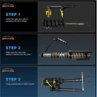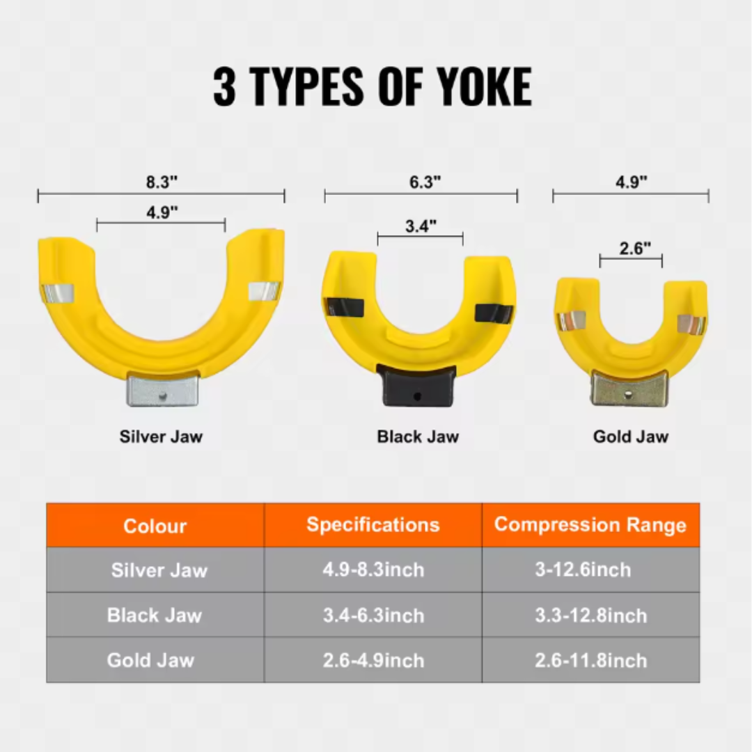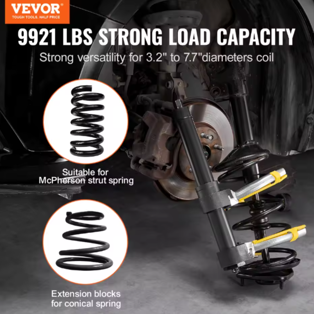 Macpherson Strut Coil Spring Compressor Kit Interchangeable Fork Extractor Tool The SucceBuy Strut Spring Compressor Kit is built for strength, safety, and versatility. Made from heat-treated #45 steel, this heavy-duty tool is designed for professional-grade spring removal and installation on a wide range of vehicles including motorcycles, cars, pickups, and SUVs. With a 9921 lbs (4500 kg) load capacity, three interchangeable yokes, and advanced safety features, this kit makes disassembling and installing suspension springs easier and safer than ever. Features & Benefits: High Load Capacity : Handles up to 9921 lbs (4500 kg) – suitable for motorcycles, cars, SUVs, and more. Three Interchangeable Yokes: Gold: 2.6 – 4.9 in spring holder (compression range: 2.6 – 11.8 in) Black: 3.4 – 6.3 in spring holder (compression range: 3.3 – 12.8 in) Silver: 4.9 – 8.3 in spring holder (compression range: 3 – 12.6 in) Enhanced Safety: Anti-slip tongues, protective sleeves, and secure bolt connections keep springs in place and prevent scratches. Heavy-Duty Construction: Forged from heat-treated #45 steel for superior hardness, strength, and long-term durability. Easy Operation: Works with a standard 7/8" socket for on-vehicle strut and coil spring compression. Usage Tips: Apply lubricating oil to threads before use. Do not use with impact wrenches. Always select the correct clamping position to prevent spring tilt or slippage. Package Includes: 1 × Strut Spring Compressor Body 3 × Interchangeable Yokes (Gold, Black, Silver) 1 × Hex Wrench Retaining Bolts Why Choose This Kit? Professional-grade performance with maximum safety Wide compatibility for MacPherson and conical springs Durable, heat-treated steel for long service life Easy, secure, and reliable spring compression