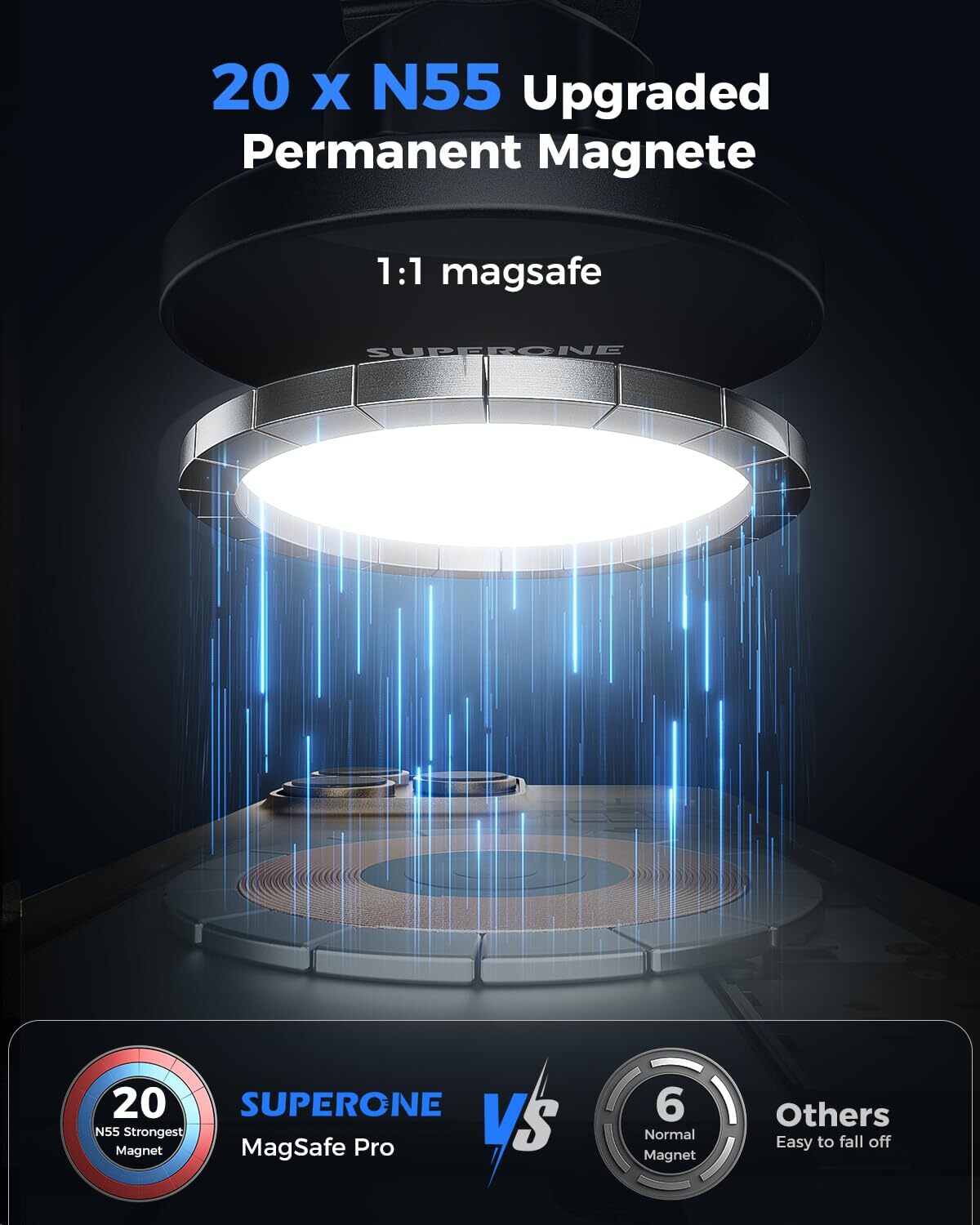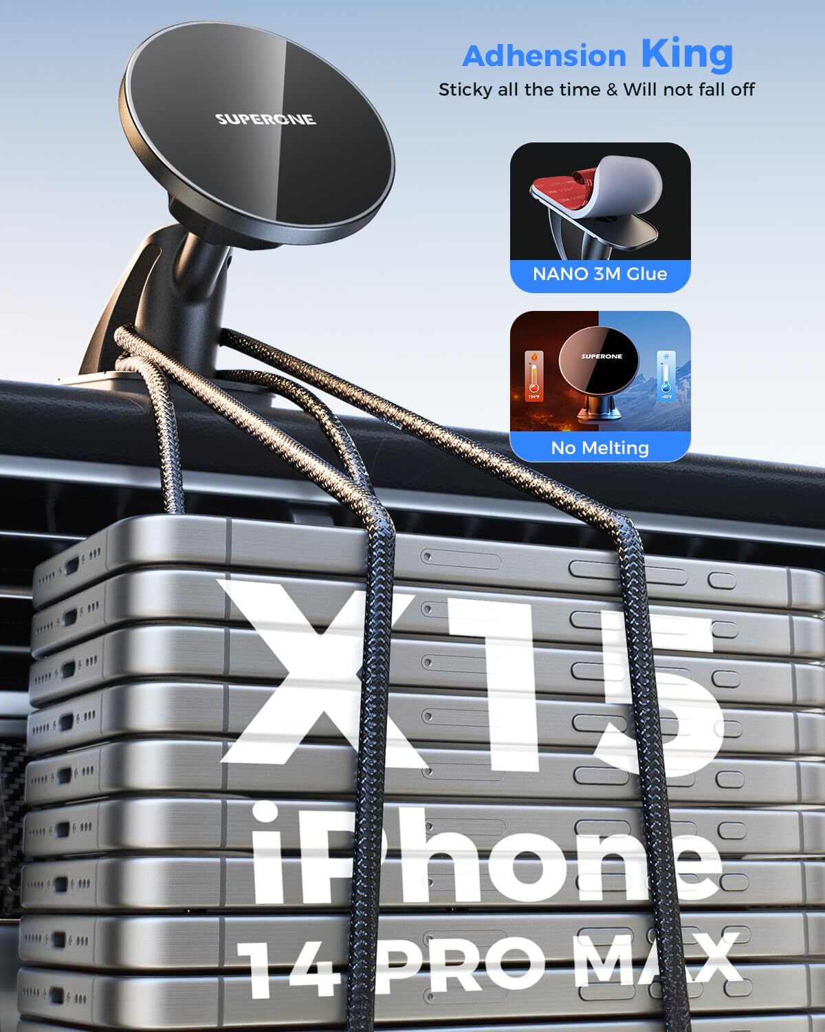 ✅【Designed for Magsafe】- Designed specifically for iPhone 16/15/14/13/12 series and Magsafe cases, this magnetic car phone mount for the dashboard securely attaches to your phone. Simply snap your phone on before you start your drive and easily remove it upon arrival, allowing for a truly hands-free experience. Enjoy a seamless driving experience. Note: This Magsafe car mount is compatible only with iPhone 15/14/13/12 series with Magsafe cases or without any case. It will not stick to other iPhone models or non-Magsafe cases. ✅【Strongest N55 Magnets】- The Magsafe car dash mount features 20 upgraded N55 magnets, capable of holding up to 8 pounds (equivalent to 15 iPhone 14 Pro Max). Even on bumpy roads, sharp turns, or sudden stops, your phone remains securely in place, ensuring your focus on the road and enhancing driving safety. ✅【NANO 3M Adhesive】- Equipped with an adhesive booster pad, this car phone holder adheres effortlessly to various surfaces. The 0.09-inch thick 3M adhesive pad offers excellent heat resistance and durability, ensuring the mount remains firm and intact in extreme temperatures ranging from -40°F to 212°F. ✅【360° Rotation & Uninterrupted Signal】- The high-quality ball joint on this mag safe dash holder allows for effortless 360° rotation with one hand, providing the optimal viewing angle for navigation or calls. The magnets do not interfere with your phone signal, ensuring uninterrupted use of navigation and other functions. ✅【Premium Quality, Exceptional Service】- Crafted with top-notch materials and excellent workmanship, this magnetic iphone car mount is both aesthetically pleasing and durable. Buy with confidence as offers an 18-month refund or replacement policy. If you have any questions or concerns, our friendly and helpful customer service team is ready to assist you at any time.