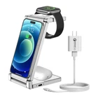 【What Can I Bring to You?】: 4-in-1 Foldable Wireless Charger allows you to say goodbye to messy charging cables,can charge most of cell phones,and supports fast charging for multiple Apple devices at the same time, compatible with Apple iPhone 15/14/13/12 or other models with [MagSafe case],Apple Watch Ultra /8/7/6/5/4/3/ 2/SE,Airpods pro 2/pro/3rd /2/1 (with wireless charging case). ★Note: For phones other than iPhone 15/14/13/12,please use the [MagSafe/Magnetic] case. 【Aircraft-grade Materials and Technology】: Museum-grade industrial design qualities,aircraft-grade aluminum materials and stainless steel rollers ensure the durability of the product. Z-shaped design and exquisite rounded corners and textures provide a comfortable touch,so you no longer worry about the quality! 【Increase Your Productivity】: Comes with an 18W adapter that takes about 2-3 hours to fully charge your phone, watch and earbuds. Compared with other chargers,MagSafe charges 30%-35% faster. It can be easily folded and stored in a travel bag or drawer,making it more suitable for business trips and traveling. ★Note: Both bottom sides can charge earbuds,please watch the video. 【Say Goodbye to Electromagnetic Injury】 : This magnetic safety charger has passed advanced CE,RoHS and FCC certifications,providing over-current protection,over-voltage protection,short circuit protection and foreign object detection. It can provide you with a safe charging experience. With professional magnetic isolation sheet,no longer worry about the elderly and children suffering electromagnetic damage. 【Product Accessories & Services】 : You will receive 1* 4-in-1 Apple Charging Station Wireless Charger + 1* QC3.0 Adapter + 1* USB Charging Cable + 1* User Manual. Each wireless charger we send to you has gone through a series of quality inspection process. 1 year warranty, if you have any problem, please contact us.