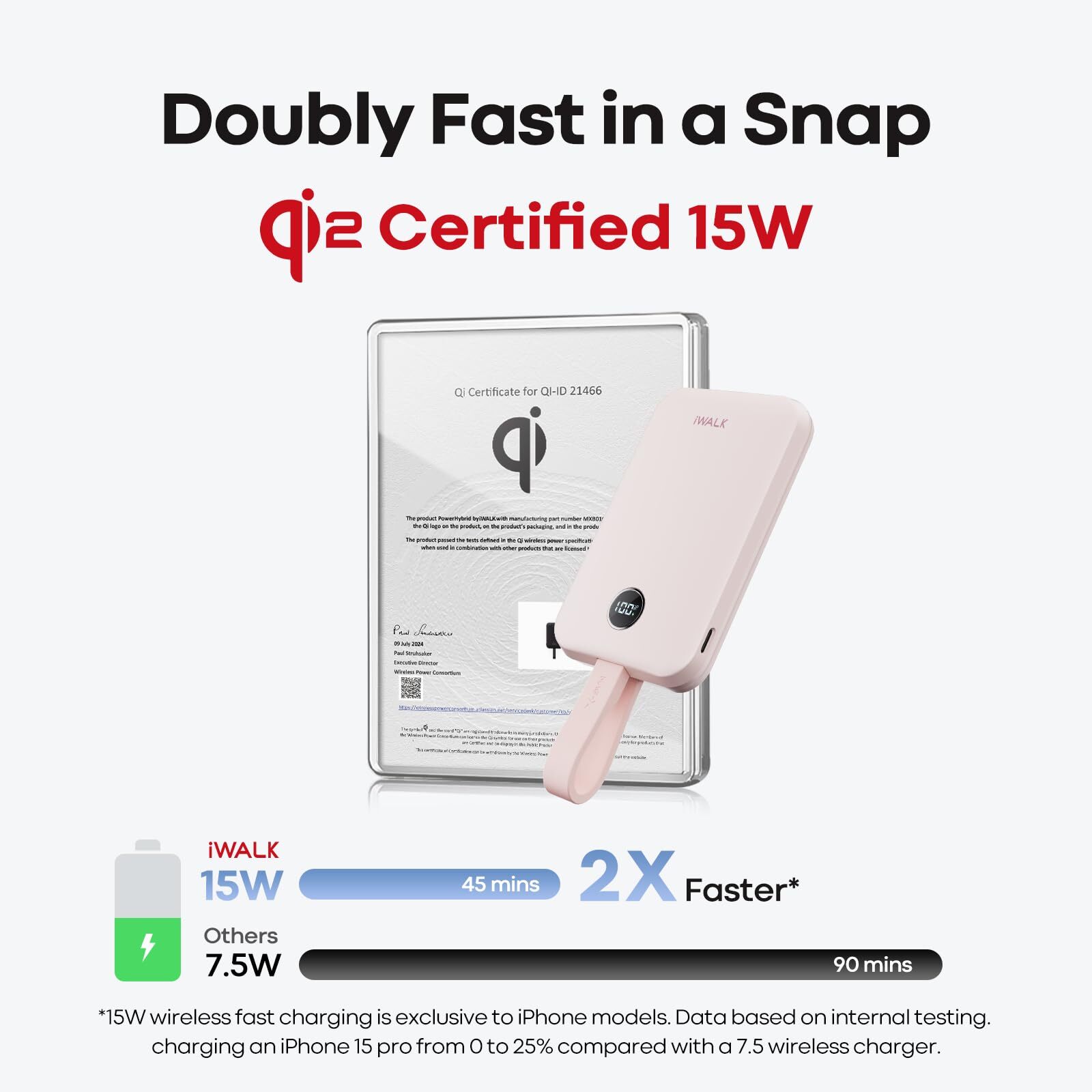This magnetic portable charger is a game-changer! Super fast 15W wireless charging works flawlessly with my iPhone, and the strong magnets keep it secure. The slim, travel-friendly design holds plenty of power for all-day use. Love that it doubles as a stand—perfect for watching videos while charging. A must-have for iPhone users!