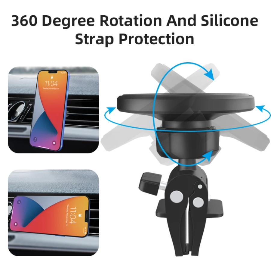Enjoy the convenience of one-click operation for easy phone placement and removal. Just snap on and enjoy driving! Phones without built-in magnet require attaching a metal ring to the phone directly or the outside of the phone case when using this magnetic phone car mount. Silicone surface leaves no scratch on your phone. The 360° rotatable linking design gives you the best viewing angle and you could quickly switch it to portrait, landscape or any other angle you want. Built-in 6 powerful N52 magnets instantly lock securely in place your phone. The magnets won't affect phone signal. Smart car phone holders make your life easier! Any suggestions and requests please feel free to contact us in anytime! PACKAGE INCLUDES: 1 x Magnetic Car Phone Holder, 1 x Magnetic Plate.