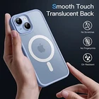 Magnetic Case for iPhone 14 6.1-Inch Compatible with MagSafe| Translucent Matte Back Slim Shockproof Phone Cover (Sky Blue) [Super Magnetic Adsorption] Strongly attach to the charger magnetically. Once snap on| never sliding. Compatible with all MagSafe accessories| such as wallet| ring holder and power bank|[Translucent Matte Back] The case back is coated with frosted material| comfortable in hand and resisting annoying smudges like fingerprints| oil residue. Also you can still admire the delicate logo of your device|[Quick Charging Experience] The perfectly aligned magnets make wireless charging faster and easier than ever before. When it's time to charge| just leave the case on your phone and snap on your charger (MagSafe Compatible)| or set it on your Qi-certified charger|[Shockproof & Protective] Made of flexible TPU frame and anti-scratch PC back| highly defend your device against severe shocks and drops. Offer extra protection with raised lips around the screen and camera lens|[Perfectly Fit] Flawlessly designed for iPhone 14 6.1 inch while not making your phone look bulky. NOTE: Not for iPhone 14 Plus / 14 Pro / 14 Pro Max. The perfectly aligned cutouts allow full access to the camera| speaker| buttons and other ports.