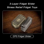 Magnetic Metal Fidget Toys - Metal Push Card Fidget Slider Stress Relief Toy, Men’s EDC Toy Fidget Toy Haptic Coin, Office Desk Toys Gifts for Boyfriend and Father (CP-3) Product Details 【Excellent Fidget Slider】- STONESTAR CP3 Fidget Slider toys is entirely made of stainless steel. The front and back of the slider have straight and curved lines respectively to help increase friction and make it easier to push open and close. The color of the metal is processed by the electroplating process. Every detail of the slider has been precisely machined, and the surface treatment is delicate and smooth, making it more comfortable to hold. 【Funny 3-Layer Fidget Slider】- You need to push up and down in the direction of the position of the internal magnets, which is very interesting. When you push this magnetic slider, the magnets inside snap into each other, giving you force feedback from the magnetic force. This process produces a "click~clack" sound that can help you fight anxiety, stress and kill the boring time, and comfort your mind and body. 【Stress Relief Toy】- Whether you are a student or an office worker, you may be under study or work stress, which over time can lead to negative emotions such as depression, hyperactivity, mania, and depression. With fidget toys, you'll be able to curb unwanted habits like nail biting and smoking. Your boring time will pass quickly and you will be happy when you are alone. Many people have successfully broken bad habits with this fun and cool fidget toy. 【Every Day Carry Fidget Toy】- These relaxing mini fidget toys are portable and small enough to play with one hand. This way you can easily keep these delicate toys in your pocket. These fidget toys are perfect for travel, work, home or pencil cases. You can play anywhere in the office, home, school, subway, station, outdoors, etc. Also, this product comes with a balck storage bag for you to protect and store your fidget toys. 【Collections and Gifts】- Fidget toys are exciting gifts that people of all ages love, regardless of age or gender. You can give it to your father, husband, brother, boyfriend, best friend. This is an easy and great gift idea for any occasion like Birthday, Christmas, Thanksgiving, Halloween, New Years or any other party/event. If you're a lover of EDC toys, this exquisite slider is for you, and it's a perfect collection.