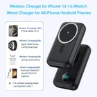 【Wireless Charger for iPhone/Apple Watch】Wireless magnetic portable charger compatible with MagSafe magnetic case, iPhone 16/16Plus/16Pro Max/15/15 Plus/15 Pro/15 Pro Max/14/14 Plus/14 Pro/14 Pro Max/13/13mini/13Pro/13Pro Max/12/12mini/12Pro/12Pro Max, Apple Watch 9/8/7/6/5/4/3/2/Ultra 2/Ultra 1/SE. USB-A and USB-C port work for iPhone 11/XR/X/8/7/6 Series, Samsung Galaxy,Google Pixel,Moto,LG and more Android Devices. (Note: Please use Mag-Safe phone case or without case for wireless charging) 【Real 10800mAh Magnetic Charger with LCD Display】The double-sided magnetic power bank with a powerful 10800mAh capacity can offer about 2 charges for the iPhone 16/15/14/13/12, up to 25 charges for iWatch, 1.2 charges for iPad. Intuitive LCD digital display screen make the remaining power management clearly visible. 【4 Devices Fast Wireless & Wired Charging】4 outputs portable power bank features both Mag-Safe and cable charging capabilities, fast charging for 4 devices simultaneously. Support max 7.5W iPhone wireless fast charging + max 3W iWatch wireless fast charging + max 18W QC4.0 USB-A output + max 20W PD USB-C output, and max 18W USB-C input. 【Super-strong Magnetic & Compact Design】The Mag-Safe battery pack for iPhone has a strong magnetic attraction, just snap to provide safe and reliable wireless charging. Compact and lightweight design allows you to take portable travel charger with you anywhere. (Measuring: 4.4*2.8*1 inch and weighting: 221g) 【Superior Safety】Wireless power bank built-in low-temperature ice cores and smart chip, its intelligent and accurate real-time temperature control technology can ensure wireless fast charging but less power efficiency loss. Smart chip with multi-protect safety system, protect your devices away from overcharging, over-current and short circuits. 【What You Get】10800mAh Wireless Magnetic Portable Charger Power bank x 1, USB-C Charging Cable x 1, User Manual x 1. Our worry-free 24-month warranty, and friendly customer service. Note: When charging the product or using it to charge a device, please select an appropriate cable and a branded power adapter to avoid overheating. If you have any questions, please contact us at any time.