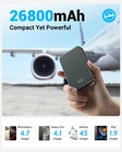 【Large Capacity and powerful】26800mAh magnetic portable charger is only 4*2.6*1.1 inch and weighs about 328g, Designed for people who are always on the go.Equipped with lithium-ion with higher energy density and better safety features, which makes the power bank more compact but with higher capacity.Upgrade your mobile charging experience! 【Strong Magnetic Wireless Charger】Magnetic battery pack with the newest magnetic technology (stronger magnetic and nano adsorption), can directly hold the back of your iPhone 16/15/14/13/12 Series, We recommend charging with mag-safe phone case or without cases to get enough suction (Using a non-magnetic phone case will cause the phone to not adsorb properly). 【Aluminum alloy casing and safe】This power bank supports 15W Max wireless and 20W wired fast charging. Its aluminum alloy casing is not only stylish but also has excellent heat dissipation performance. So it never gets hot. Say adios to power troubles! 【PD 20W Wired Charging Share for a friend】Not just for iPhone! This magnetic battery pack has a Type-C and a USB-A port for charging multiple devices. It's the perfect travel buddy. Take your family and hit the road with it! 【What you get】26800mAh Magnetic Power Bank x 1, USB-C Charging Cable x 1, Instruction Manual x 1. We provide Professional after-sales service. Every product is certified safe and passing factory tests. if you have any questions, feel free to contact us via Amazon and reply within 24 hours.