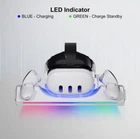 Description The Charging Dock for Meta Quest 3 provides a convenient and comprehensive charging solution for your Quest 3 and controllers. The charging dock includes two rechargeable batteries for your controllers, ensuring your devices are charged and ready for VR whenever you desire. To set up the charging dock: 1. Insert one end of the included 30W adapter into the dock. 2. Plug the power adapter into a wall outlet. To install rechargeable batteries in the controllers: 1. Remove the battery cover from the right controller. 2. Take out the batteries currently in use in the controller. 3. Insert the rechargeable batteries into the designated slots in the controller, with the negative "-" end facing upward, then replace the battery cover. 4. Rotate the rechargeable battery so that the exposed metal surface faces you, ensuring the metal pins of the battery cover can make contact with the battery's metal surface; 5. Repeat this process to install rechargeable batteries for the left controller. Note: Rechargeable batteries need to be charged before use. To charge your devices using the charging dock: 1. Place the controllers sideways on the charging dock with the grip buttons facing up. 2. Use the included magnetic USB-C connector to insert into the Quest 3, place the headset on the charging dock with the front facing you, and attach the magnetic cable of the charging dock to the Quest 3 USB-C port. 3. Ensure that controller straps or protective covers do not interfere with charging. 4. When the charging dock indicator light turns blue, your devices are charging. When your devices are fully charged, the indicator light will turn green. Package includes: 1 × Charging Dock for Quest 3 1 × USB-C Adapter 4 × Magnetic USB-C Headset Connector 2 × rechargeable batteries for Controllers 2 × Battery Covers for Controllers 1 × Guide. Note: 1. Ensure that the battery "-" and "+" are correctly placed in the controller. The battery has metal contacts (silver), which must be facing upward for charging. 2. To charge both the Quest 3 and controllers simultaneously, please use the included 30W adapter. (Directly plugging the 30W adapter into the headphones for charging is not recommended.) 3. The magnetic USB-C headphone interface is located in the middle of the battery box sponge strip. 4. Since the controllers were not designed with charging status detection initially, you cannot see the charging status of the controllers on the Quest 3 control panel, but the charging dock has indicator lights to show whether the controllers are charging (the indicator light turns green when fully charged). 5. To extend the lifespan of the controller battery, we've set the charging cutoff voltage to 1.375V. Therefore, after the charging dock completes charging, the actual battery capacity will be 60% to 80%.