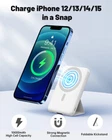 Pocket-Sized and Magic Foldable Stand : With a circumference the size of a credit card and a weight of only 0.4 pounds, the small magnetic battery pack compact design makes it easy to hold while talking on your phone, so you can take calls, take photos, etc. with one hand.Your phone charges wirelessly while the practical foldable stand supports your phone (horizontally or vertically) and keeps your phone charged while FaceTiming. 10000mAh Large Capacity Battery: Support iPhone 13&12 charging 3 times, mobile power pack uses the latest magnetic suction technology, strong magnets ensure that the mobile power is firmly locked to your cell phone, charging immediately after contact, built-in LED digital display, so you know the remaining power, no more guessing to use the power. Designed for iPhone 15/14/13/12 Series: Magnetic Power Bank compatible with iPhone15/iPhone15 plus/iPhone15 Pro/iPhone15 Pro max/iPhone 14/iPhone 14 Plus/iPhone14 Pro/iPhone 14 Pro Max/iPhone 13/iPhone 13 mini/iPhone 13 Pro/iPhone 13 Pro Max/iPhone 12/iPhone 12 mini/iPhone 12 Pro/iPhone 12 Pro Max (only compatible with cases with Mag-Safe certified cases or without cases). Up to 22.5W USB-A PD output and up to 20W USB-C output; supports up to 18W Lighting input and up to 18w USB-C input. Superior Safety: This portable fast charger has a built-in low-temperature ice core and a comprehensive multi-protection safety system that includes temperature control, overcharge protection, short-circuit protection and more. Also, the powerbank case is made of silicone to prevent scratching your phone. What You Get: Mag-Safe wireless charger, USB-C cable, instruction manual, which is both a wireless charger and an wireless magnetic power bank. No more worrying about charging distance and say goodbye to messy wires.