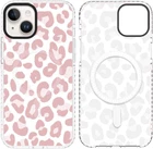 Magnetic for iPhone 13 Case [Compatible with MagSafe] Light Pink Leopard Print Pattern Wireless Charge Slim Shockproof Case for iPhone 13 Phone Case, Pink Leopard (6.1')