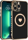 Magnetic for iPhone 13 Pro Case| [Compatible with MagSafe] Cute Heart Pattern Slim Fit Soft Flexible Shockproof TPU Bumper Protective Wireless Charging Case for iPhone 13 Pro 6.1"| Black