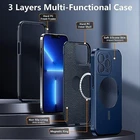 Magnetic for iPhone 13 Pro Case,[Compatible with Magsafe][Military Grade Drop Protection][Non-Slip][2 Pcs Glass Screen Protectors] Dropproof Heavy Duty Shockproof Phone Case-Black Compatible With All MagSafe Accessories: Magnetic case designed for iPhone 13 Pro Case with a built-in perfectly aligned Super N52 magnetic ring that strengthen the magnetic connection, make wireless charging faster and easier without removing the case.,Trusted Military-Grade Dropproof: 3000+ times drop tests from various angles, no damage! Made of strong hard back panel & flexible bumper frame, built-in microfiber lining fully absorbs and disperse shocks.Multi-layer custom all-round protect your phone from drops or bumps.,Upgraded Screen & Camera Protection: 0.33MM 9H Clear Tempered Glass Screen Protector with 99.99% touch response sensitivity, precise cut designed Camera lens protect without affecting the flash to preserves the original pixels, raised bezels keeps your phone safer, giving you the ultimate bare metal experience.,Unique & Precisely Designed:The logo window shows the tone of your brand.the anti-slip material on the side provides excellent grip.What's more, the precise cut design easy access to all keys and functions that brings you excellent use experience.,Compatibility & Professional Support: This case is ONLY designed for iPhone 13 Pro (6.1 inches). And we provide 365-Day-Replacement Service for defective products, if you have any questions, please feel free to contact us, you'll get an effective solution.