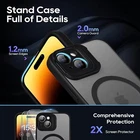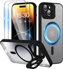 Magnetic for iPhone 15 Case with Stand Camera Kickstand with Screen Protector 【Camera Stand Case for iPhone 15】✅ This case specially only designed for iPhone 15 6.1-Inch. If you encounter any problems such as wrong size case, please feel free to contact us. A lifetime warranty is promised for this product. 【Upgraded Stable Kickstand】✅ The upgraded camera kickstand precisely fits the camera lens and protects each lens, it can be used as a stand. 【Quite Strong Magnetic】✅ iphone 15 case magsafe has a built-in powerful magnet that won't fall off no matter how you rotate it, with superb adsorption ability. The perfectly aligned magnetic attraction makes wireless charging faster and more stable. Compatible with magsafe, magnetic leather wallet and sleeve, stand wireless charger and etc. 【360° Full Protection】✅ This iphone 15 protective case with 2x screen protector is designed the non-slip and shockproof cushions in the four corners frame with multi-layer cushioning structure, which provides professional drop protection for your iPhone from drops, bumps and tumbles. 【Soft Slip and Anti-Yellow】✅ This iphone 15 case with kickstand is made up of a tough, non-yellowing PC back and a flexible TPU frame. A new nano oleophobic layer has been added that does not stick to fingerprints and dust easily while giving the case a silky touch for a secure and comfortable grip. The ultra-thin minimalist design does not add bulk and is easy to carry. ------------------------------------------------------------------------------------------ Shipping Policy: Domestic lower 48 states shipping is free and expedited. Shipping is also free to the rest US states and US Protectorates including Puerto Rico, Alaska, Hawaii, APO/FPO, but delivery times are longer than usual. If you need your order by a specific date please contact us before you make the purchase for a delivery estimate. ------------------------------------------------------------------------------------------ Return Policy: Your satisfaction is guaranteed! If for any reason you are unhappy with your item, just return it within 30 days for a full refund. Please contact us prior to initiating a return so that we can issue you a refund authorization.