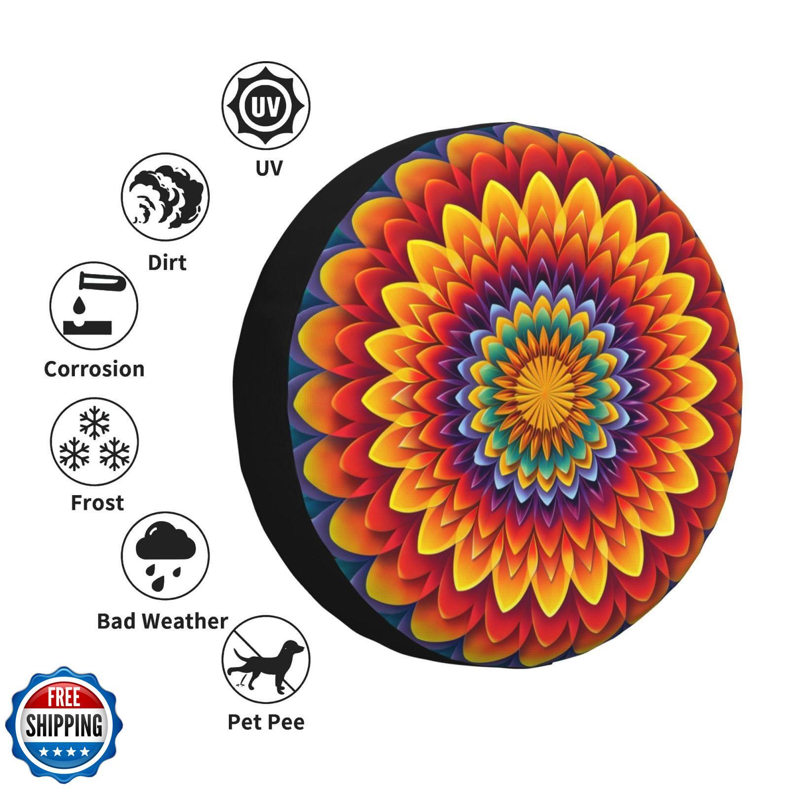 Mandala Spare Tire Cover Weatherproof Universal Wheel Protectors Wheel Covers for RV Camper Travel Trailer SUV Truck 15 Inch Features 【High Quality Material】: Our Spare Tire Cover Is Made Of High-Quality Polyester Fiber With Non-Scratch Soft Backing. Dustproof And Waterproof, And Sunscreen. Effectively Protect Your Spare Tire From Rain, Snow, Wind, Dust, Sun And Any Bad Weather When Your Vehicles Is In The Garage Or Outside. 【Universal Size】: The Spare Tire Covers Universal Fit Tire Diameters 14,15,16,17 Inch , The Picture Details The Calculation Of The Size, Please Measure The Tire Size Before Buying. 【Wide Application】: This Mandala Spare Tire Cover Is Suitable For Trailers, Rv, Suv, Off-Road Vehicle, Camper And Trucks, Or Any Other Tire With The Appropriate Size. 【Easy To Install】: Tethered Design.Our Spare Tire Cover Is Easy To Install And Remove Without Any Tools. 【Personalized Design】: The Perfect Pattern Design Makes The Appearance Of Your Car More Distinctive And Makes Your Life Wonderful. Show Your Love For Life While Protecting Your Spare Tire. Shipping Free & Fast Shipping: We offer free shipping to most of the USA with a normal delivery time of 3-7 days. However, due to the current situation, additional delivery time (up to 3 weeks) may be required for some items. Alternative Carriers: We may use alternative carriers (e.g., USPS, FedEx, UPS) to ensure your package arrives safely and on time. Due to the use of multiple carriers, we are unable to provide a tracking number automatically. Handling Time: Orders are processed and shipped within 1-2 business days of receiving cleared payment. Shipping Restrictions: Shipping to Alaska, Hawaii, Puerto Rico, Guam, and other US territories may incur shipping charges or delivery restrictions. Please contact us before ordering, or your order can be refunded/cancelled. State Restrictions: Certain items may not be shipped to California due to state regulations. Contact for Tracking Updates: If you require tracking updates or have any concerns about the delivery of your order, please feel free to contact us, and we will be happy to assist you. Return Policy 30-Day Hassle-Free Returns: If you are not completely satisfied with your purchase, you can return the item for free within 30 days of receiving it for a full refund or exchange. Easy Return Process: Contact us, and we will provide you with a prepaid return shipping label and detailed instructions. No Restocking Fee: There are no restocking fees for returns. However, the buyer is responsible for return shipping costs if the return is not due to a seller"s error. Refund Processing: Refunds will be processed within 1 business day of receiving the returned item in its original condition. Feedback Your feedback is extremely important to us. We strive to provide the best products and customer service possible. If you are satisfied with your purchase, please take a moment to leave us a positive review. If you have any concerns or issues with your order, please contact us before leaving negative feedback. We are committed to resolving any problems and ensuring your satisfaction. Contact Us If you have any questions or concerns, please feel free to reach out to our customer support team. You can contact us through the eBay messaging system. We are available Monday to Friday, 9:00 am to 5:00 pm EST, and we will do our best to respond to your inquiry within 24 hours. Thank you for supporting our small family business!