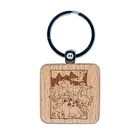 March of Various Dinosaurs Engraved Wood Square Keychain Tag Charm
