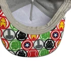 Marvel Logo Snapback Gray Red Truckers Hat Features: Superhero symbols under visor One size fits most Crown: 85% acrylic, 15% wool Upper visor: 100% polyester Under visor: 100% cotton Great pre-owned condition: no holes, rips, tears or stains.