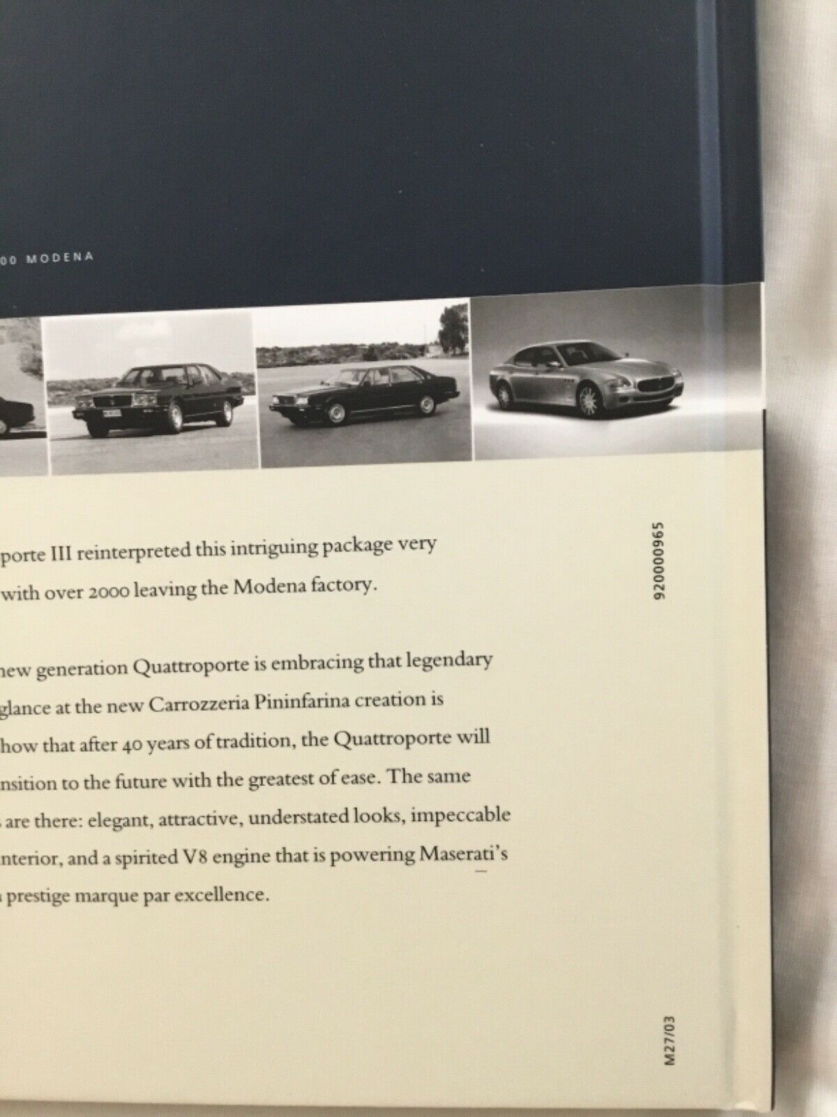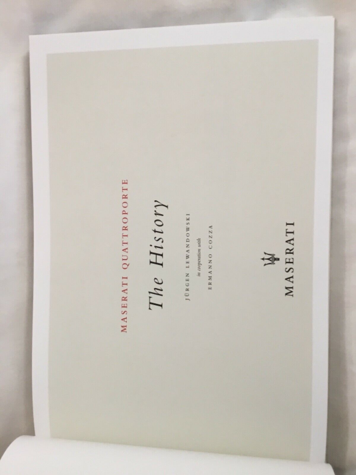 Narrative Type: Nonfiction Publisher: Maserati SPA Condition: Brand New All returns accepted: ReturnsNotAccepted Genre: Transportation Language: English Publication Year: 2004 Intended Audience: Adults Topic: Automobiles Format: Hardcover Type: Automotive History Book Title: Maserati Quattroporte the History Author: Juergen Lewandowski