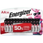 Max Aa Batteries (36-Pack), Double A Alkaline Batteries Power the devices you love with Energizer MAX Alkaline AA Batteries. These Energizer batteries fuel the technology that helps you live, work and play, whether you need remote batteries, clock batteries, or backup batteries for your child's favorite toys and games. Energizer's #1 longest-lasting MAX, these double A batteries keep your favorite devices running longer. Powerseal Technology helps protect your devices against damaging leaks for up to two years after these AA Energizer MAX Batteries are fully used. With a shelf life of up to 12 years in storage, these batteries are ready to keep your devices operating when you need them most. Depend on the power of Energizer MAX AA Batteries to power your everyday electronics. 36 pack of Energizer MAX AA Alkaline Batteries, Double A Batteries Energizer's #1 longest-lasting MAX AA batteries provide dependable power - up to 50% longer lasting than EVEREADY GOLD in demanding devices The power you depend on for your AA devices, from toys and flashlights to everyday items like remotes These Energizer AA batteries hold power for up to 12 years in storage Energizer MAX AA batteries are designed to protect your devices against damaging leaks for up to two years after fully used Feel confident knowing you have the long-lasting power and protection you expect from Energizer with this AA battery pack