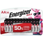 Power the devices you love with Energizer MAX Alkaline AA Batteries. These Energizer batteries fuel the technology that helps you live, work and play, whether you need remote batteries, clock batteries, or backup batteries for your child's favorite toys and games. Energizer's #1 longest-lasting MAX, these double A batteries keep your favorite devices running longer. Powerseal Technology helps protect your devices against damaging leaks for up to two years after these AA Energizer MAX Batteries are fully used. With a shelf life of up to 12 years in storage, these batteries are ready to keep your devices operating when you need them most. Depend on the power of Energizer MAX AA Batteries to power your everyday electronics. 36 pack of Energizer MAX AA Alkaline Batteries, Double A Batteries Energizer's #1 longest-lasting MAX AA batteries provide dependable power - up to 50% longer lasting than EVEREADY GOLD in demanding devices The power you depend on for your AA devices, from toys and flashlights to everyday items like remotes These Energizer AA batteries hold power for up to 12 years in storage Energizer MAX AA batteries are designed to protect your devices against damaging leaks for up to two years after fully used Feel confident knowing you have the long-lasting power and protection you expect from Energizer with this AA battery pack
