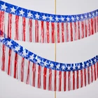 Mega-L 4th of July 2 Pack Ceiling Tinsel Fringe 🗽 PACKAGE INCLUDES: 2 Packs red white and blue star foil fringe garland / metallic tassel banner, each garland is 1.24 feet wide * 19.68 feet long, perfect 4th of July decorations. 🎆 EASY TO INSTALL: Metallic foil fringe garland has double stick tape at the back for easy mounting and removal. It can be easily cut into any size as well. 🇺🇸 HIGH-QUALITY FUNCTION: High-quality metal foil tassel garland, lightweight, easy to use, bright color, can create a strong festive and fun atmosphere. 🦅 APPLICABLE OCCASIONS: Suitable for all kinds of activities, such as parade floats, table skirts, weddings, carnivals, graduation parties, classroom decorations, stage skirting, Christmas, Halloween, dance, photography background, etc. 🌎 FESTIVE AND FUN: These 4th of July foil streamers are the finishing touch for any themed party such as Memorial Day Party, US Flag Day, Independence Day party, Veterans Day party, Election party, Labor Day party, or wedding party decorations.