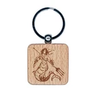 Merman Mermaid Man with Trident Engraved Wood Square Keychain Tag Charm