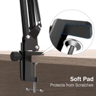 UPGRADED DESK CLAMP of MIC STAND- In comparison to other versions, this metal desk clamp is built with anti-scratch pad and wider mouth up to 2" to fit most desktop. It also has a fixed knob, so the swing arm does not move freely after the knob is locked. ANGLE ADJUSTMENT-The suspension boom arm stand provides 180?? up and down rotation adjustment. The mic arm stand gives a wide extension and provides your mic with full range of motion. Attaching your mic to the arm stand (adapter included) will allow you to place the mic closer to your mouth which will result in a richer, fuller tone to your voice. FOLDABLE AND PORTABLE-The arm stand can be folded to save more desktop space. You can also take the mic stand out for recording anytime, which suitable for people who own less desktop space. You can also put it in your bag and carry the boom arm to somewhere you want to record or podcast. WIDE COMPATIBILITY-Coming with 5/8'' to 3/8'' metal adapter, the extendable boom arm is compatible with many microphones, such as the Fifine K669B, K670, K683A, K658, K688, AmpliGame (A6V, A8), AM8 usb microphones. (Mics are not included.) The mic stand is greatly suitable for gaming, streaming, podcasting or more scenes, and also friendly to recording beginner. Tips: 1) The desk clamp is suitable for desktop with a thickness of 2??????or less. 2) The microphone is not included. STURDY METAL MATERIAL-Made of sturdy metal, the mic arm stand is attached with strong and elastic springs to upgrade the stability and durability of the suspension arm stand. When you unintentionally hit the desk while adjusting the arm or playing games, the stand will not shake strongly. The boom arm gives you more stable whether adjusting position, angle of arm stand or carrying and moving microphone.