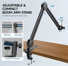 Microphone Boom Arm, Heavy Duty Boom Arm Mic Stand Suspension Scissor Mic Arm Desk Mount with Upgraded Mic Clip Max Clamping Range 60mm for Blue Yeti Snowball,Shure,Hyperx Quadcast & Other Mic Color Black Brand iQlQPQ Material Metal Item Weight 1.49 Kilograms Style Modern About this item BUILT-IN SPRINGS DESIGN - Unlike other mic stand with external springs,iQLQPQ boom arm mic stand with built-in springs to better prevent the low frequency vibration noise entering into the mic, which make your sound clearer and smoother when streaming or podcasting WIDE COMPATIBILITY - The built-in 5/8" screw compatible with most microphones, such as Blue Yeti,Blue Snowball,HyperX QuadCast,Audio-Technica AT2020,Shure SM7B,Logitech Webcam and more STRONG LOAD-BEARING CAPACITY - This boom arm stand is made of sturdy metal and can support microphones weighing up to 5lb/2.5kg. Therefore, you can confidently use various types and shapes of microphones without worrying about the stand not being strong enough FLEXIBLE ADJUSTMENT - 14"/35cm adjustable arm can help you rotate the arm 360º, easily adjust the microphone to any placement and achieve the best recording effect UPGRADED MIC CLIP - Come with an upgraded mic clip which made of hard plastic with non-slip sponge inside, suitable for microphones with 32-60mm outer diameter like AT2020,HyperX QuadCast, Fifine K669B, Razer Seiren X etc. Pls note this mic clip doesn't fit for Blue Yeti & Blue Snowball WHAT YOU GET - 1 x Mic Boom Arm, 1 x Desk Clamp, 1 x Mic Clip, 4 x Cable ties. We provide 24hr Professional Customer Service. If you have any questions, please feel free to contact us . We offer FREE shipping on all orders! . We ship within Five business days of payment, usually sooner. . We use a selection of shipping services such as UPS, FedEx, USPS etc. . We only ship to the lower 48 states, no APO/FPO addresses or PO Boxes allowed. . Local pickups and combined shipping options are not provided at this time. . You can return a product for up to 30 days from the date you purchased it. . Any product you return must be in the same condition you received it and in the original packaging. Please keep the receipt. . Your satisfaction is a wonderful reward for our efforts. Please assist us by leaving a positive review if you feel pleased with our service. . In the event that you encounter any difficulties related to your order, please do not hesitate to reach out to us directly through the Messaging system on the Ebay platform. Kindly consider opening a COMPLAINT or a RETURN REQUEST as a last resort, only after all other possible measures have been attempted and we have been unable to provide you with assistance. . We will get in touch with you within 24 hours and make every effort to ensure your satisfaction. . Please rest assured of our service quality.