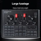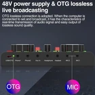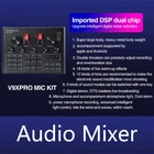 Microphone Live Broadcast Equipment Sound Card Sound Mixer Board Live Streaming Features: brand new and 48V Power Supply & OTG Lossless Live Broadcasting: OTG lossless connection is adopted. When the computer is to set and broadcast, it has the characteristics of real-time transmission of and easy output of lossless sound quality. 7 Big Rotation + 2 Big Pusher: Professional tuning independent adjustment, 12 kinds of tones make the electric sound modification more shocking. A for Key to for Smart to Eliminate Sound: It can automatically identify the host's voice and intelligently reduce the volume of background music, and effectively eliminate 95% of the voice of the music So as to become accompaniment. Effect: With the host control field sound effect, the background accompaniment import for key control field dryness. Multi Layer Noise Reduction and Sound Quality: Multi layer and different density filtering technology can effectively suppress noise, human voice clearly, and avoid the trouble caused by noise. Specifications: BT Version: 5.0 Main Chip: Impoted 16bit 48 < Hz Snr≥94db Playback: 16bit/ 48 Khz Snr 105db Distortion:<= 0.1% Output Power: 329thd +n= 0.1% Power Consumption: 5w Rated Input 5v/1a Charging Current: 500ma Frequency 20h-20khz Metal Color: Black Product Dimension: approx. 18x13x2.8cm/7.09x5.12x1.10inches Net Weight: 680g/1.50lbs Package Includes: 1x V9X Computer Live Broadcast External Sound Card 1x USB Charging Cable/ Computer Data Cable 2x 35mm Live Cable 1x Instruction Manual note: Please allow 1-2cm errors due to manual measurement. Due to the difference between different monitors, the picture may not reflect the actual color of the item.