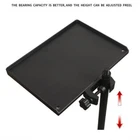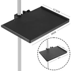 Features: *Brand new and high quality. *Allowing you to keep your picks, capo, or any small accessory within hands reach of your mic stand when you are singing. *Adjustable clamp allows attachment to various stands. *Made of high-quality plastic materials, stable and strong for our use. *Raised edge all the way around to prevent items from rolling off. *Easy to install. Specifications: Item Type: Sound Card Tray Material: Plastic Size:As the shown Colour: Black Screws on to: tube diameter within 2.5cm. Package Included:1 PC Sound Card Tray Note: Please refer to the measurement. Tiny measuring error is allowable in normal range. There might be a little color difference due to the monitor, camera or other factors, please refer to the physical item.