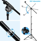 【Extendable & Detachable Boom Arm】The boom arm can be 360°rotated through adjustment knobs for easy positioning. Simply remove the boom arm and attach microphone clip to convert the mic stand into a traditional straight mic stand. 【Height Adjustable】 The height range of the microphone stand can be adjusted from 28-89 inches, perfect choice for adults or children. 【Carrying Bag & Portable】All parts could be stored in the carrying bag for convenient transport. The detachable design makes the stand space-saving and more portable, which provides great convenience for various types of activities like the stage, studio, concerts, outdoor performances, and more. 【Universal Mic Clips】The mic stand comes with 2 different styles of microphone clip holders, it can hold most of the microphones on the market. With 2 clip-on cable holders to keep the cable neatly and orderly. 【Stable Tripod Base】This mic stand is made of metal tubing with stable tripod base, which makes it extremely sturdy and super stable. Non-slip foot cover prevent it from moving around. Perfect floor use mic stand for stage performance, wedding, church, party or live broadcasts etc.