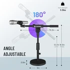 Return Policy Fast Delivery Trusted seller Microphone Stand Desk Adjustable: Boom Arm Mic Stand Desktop with 2 Mic Clips Reinforced Metal Base Table Mic Mount with 3/8" to 5/8" Screw Adapter for Singing Performance Wedding Stage Black Product Description 2-IN-1 DESKTOP MIC STAND: Simply remove the boom arm and attach the mic clip to convert the boom microphone stand to a straight mic stand. It also comes with 2 types of microphone clips which allow you to fit most types of microphones. Perfect for meeting, speech, video conference etc. ULTRA STABLE WEIGHTED BASE: The base is weighted, which improves stability, reduces vibrations, minimizes the risk of accidental tipping upon impact, safeguarding the microphone and other equipment. With a maximum load capacity of up to 4.4lbs, it can support larger or heavier microphones and accessories, making it suitable for various recording needs. EASY TO ADJUST HEIGHT: Thanks to the retractable and rotating design, the height of the desktop mic stand can be adjusted freely according to your needs. With the quick-release fastener, the height of the tabletop boom microphone stand can be adjusted from 12.2-16.5 inch. Extendable Boom Arm: The telescoping boom arm extends freely within 8.2-15.3 inch and 180° rotatable via adjustment knobs allowing for easy positioning. Note: If you need an adapter, please take a coin, and insert it into the groove on the bottom of the microphone clip, turn it counterclockwise, then you will get adapter from 3/8" to 5/8". Improved Compatibility: This mic stand accommodates microphones with diameters ranging from 0.98-1.38 inches, thanks to its USA standard 5/8 inch microphone adapter threading. It's perfect for various applications such as meetings, presentations, lectures, podcasts, live broadcasts, and video chats, offering a versatile solution for your microphone placement needs. Shipping Returns Payment Shipping Shipping is FREE to all addresses other than APO/PO boxes in the lower 48 states. All our stock ships from US-based warehouses. Shipped via USPS or UPS (depending on location and package weight) Unless stated otherwise, all orders will ship within 24-72 hours of your payment being processed. Check our feedback to see the great reviews of FAST shipping we offer. Returns Seller does not accept returns Payment We currently accept payment via eBay managed payments only. Once payment is cleared, we will dispatch your shipment within 1-3 business days. Please refer to the "Shipping" tab for more information regarding shipping speed to your destination.